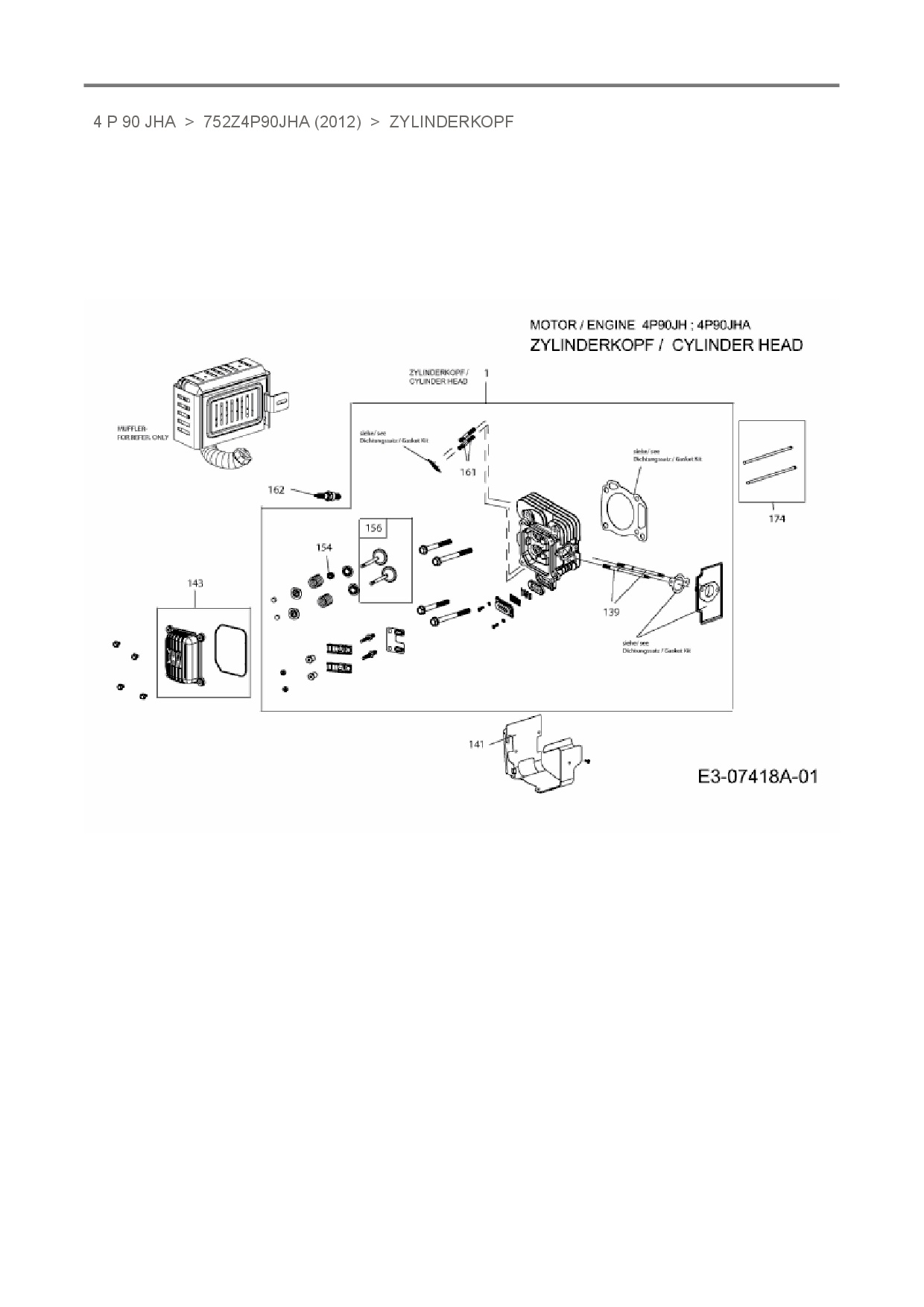 Ersatzteile für Vertikal MTD-Motoren 4 P 90 JHA aus der Zeichnung Zylinderkopf: