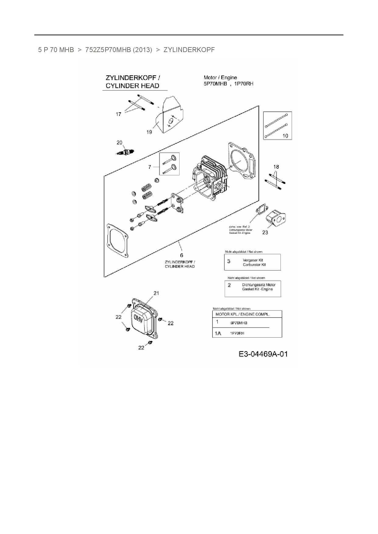 Ersatzteile für Vertikal MTD-Motoren 5 P 70 MHB aus der Zeichnung Zylinderkopf: