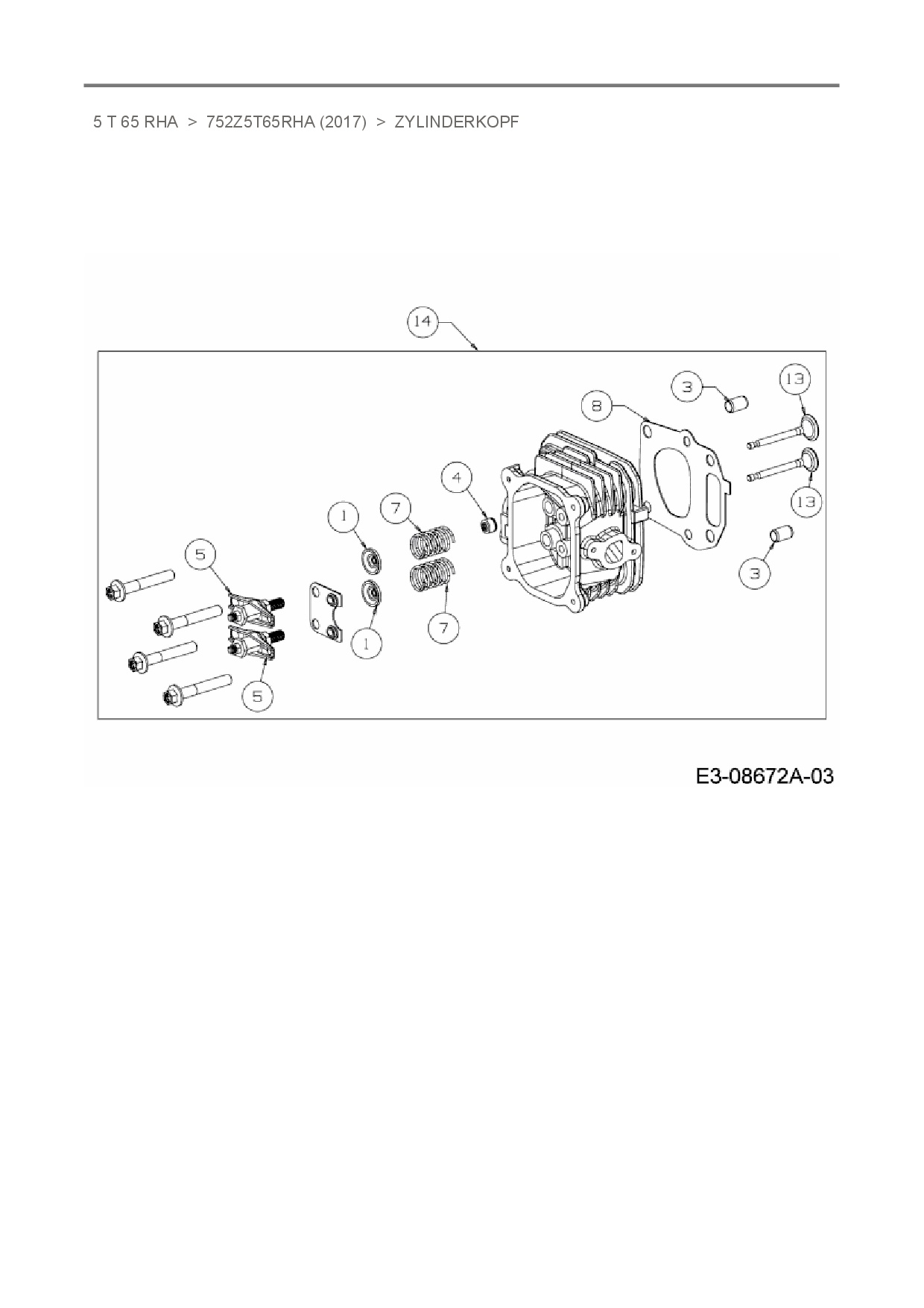 Ersatzteile für Vertikal MTD-Motoren 5 T 65 RHA aus der Zeichnung Zylinderkopf: