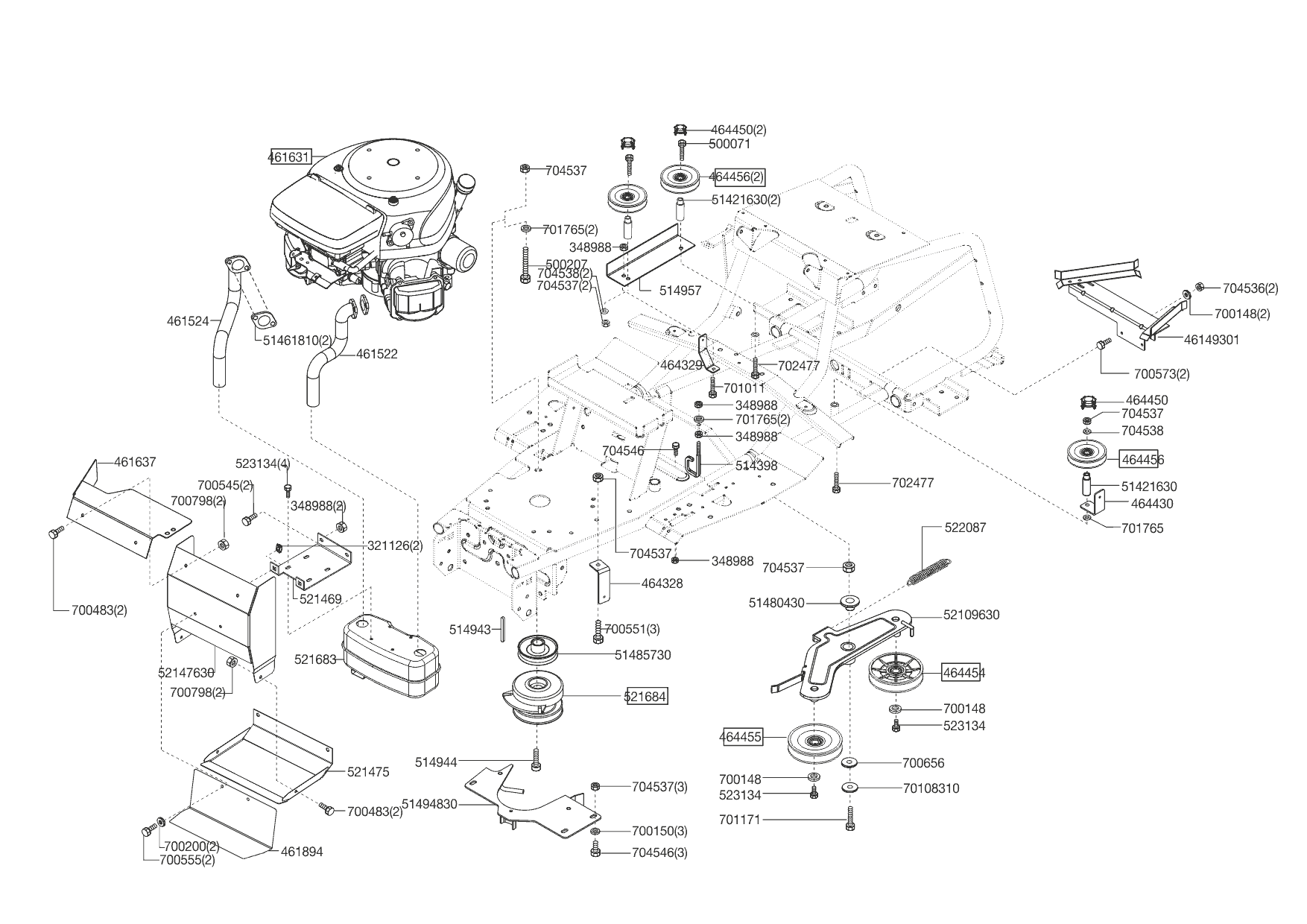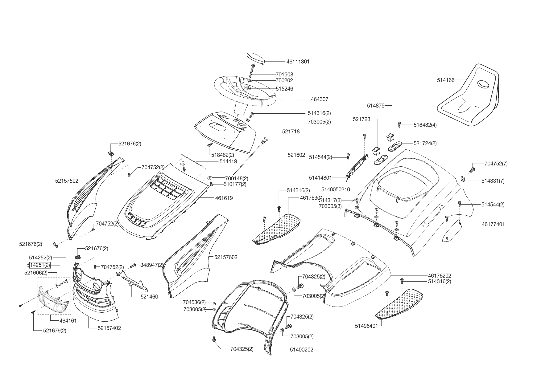 Zeichnungen von Powerline Rasentraktor T 16-102 HD-H ab 01/2010 mit der Geräte-Artikelnr. 886879: