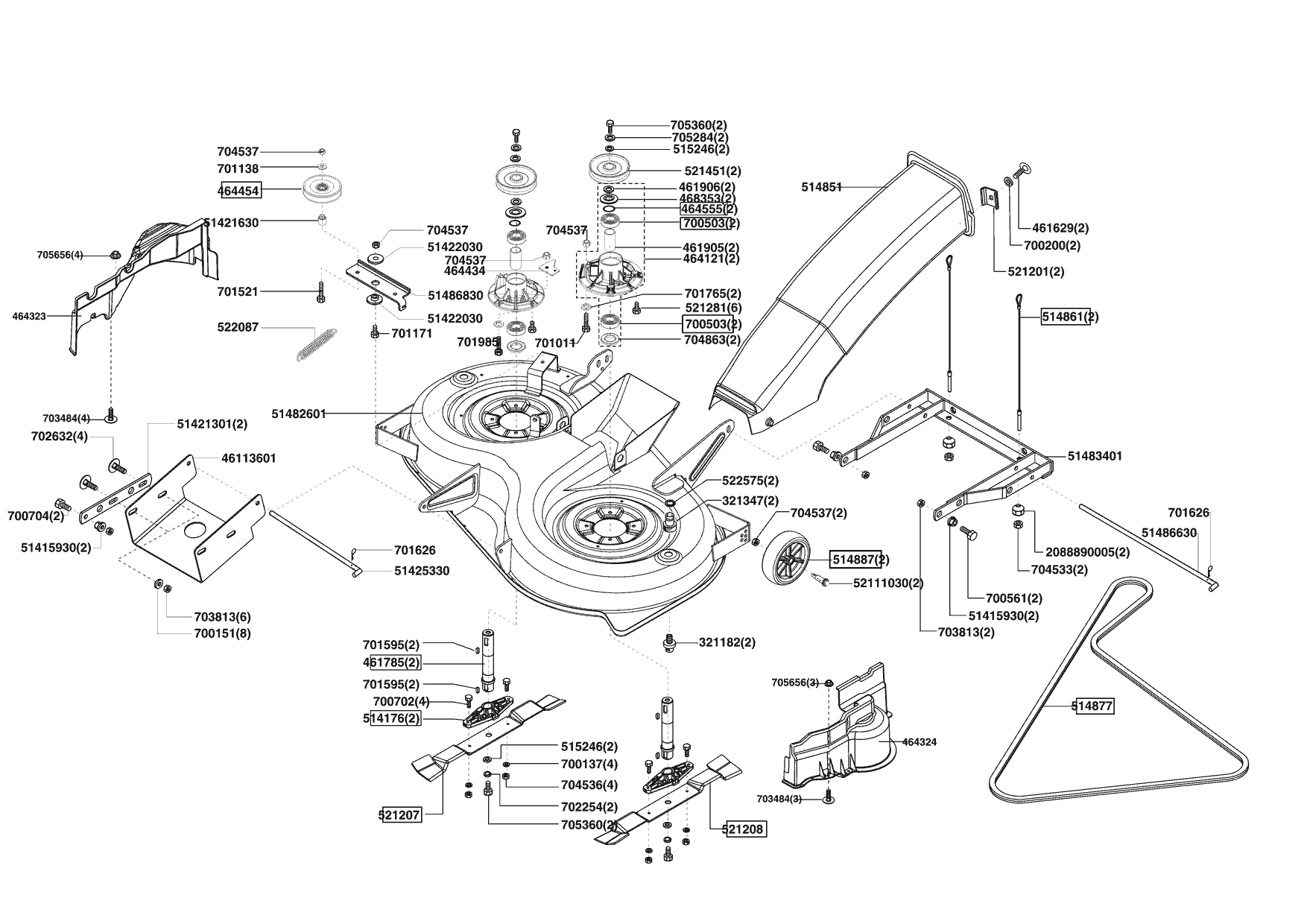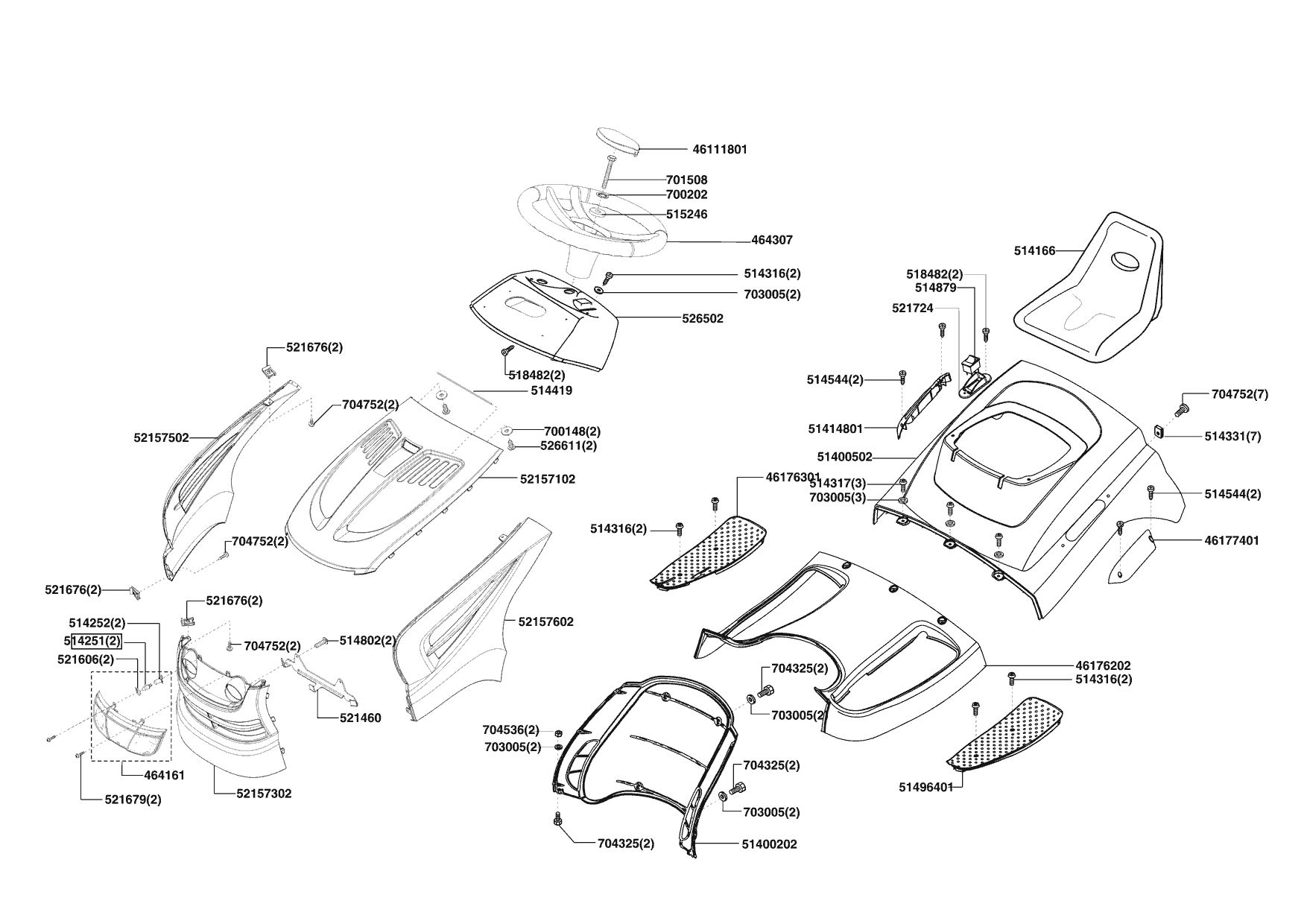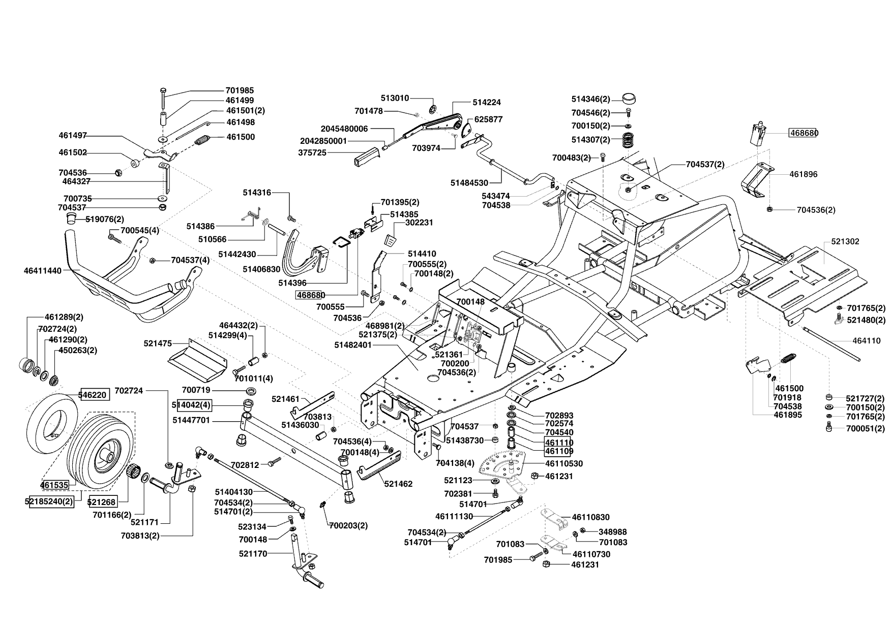 Zeichnungen von Powerline Rasentraktor T 18-102 HD (F) ab 01/2011 mit der Geräte-Artikelnr. 887079: