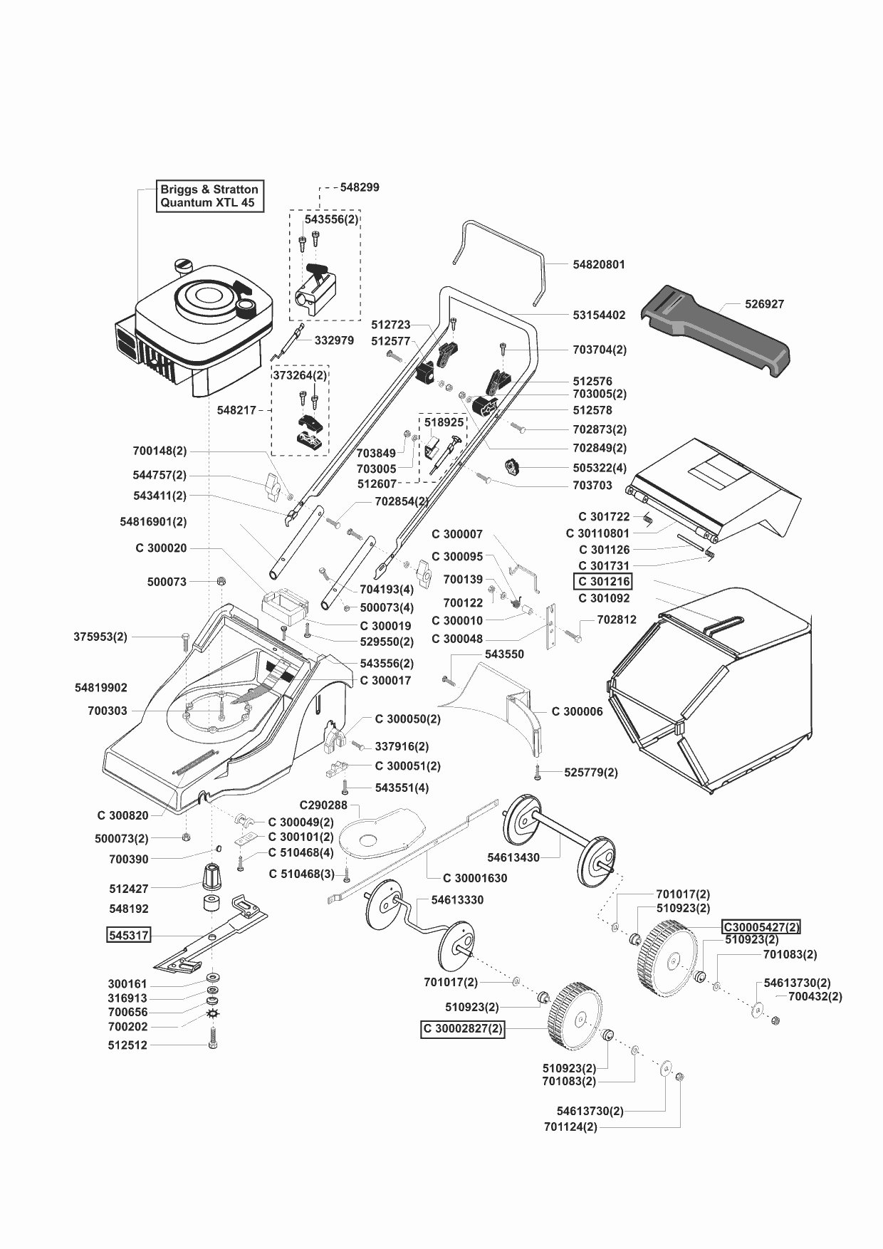 Zeichnungen von Concord Benzinrasenmäher 4600 B ab 02/2002 mit der Geräte-Artikelnr. 110538: