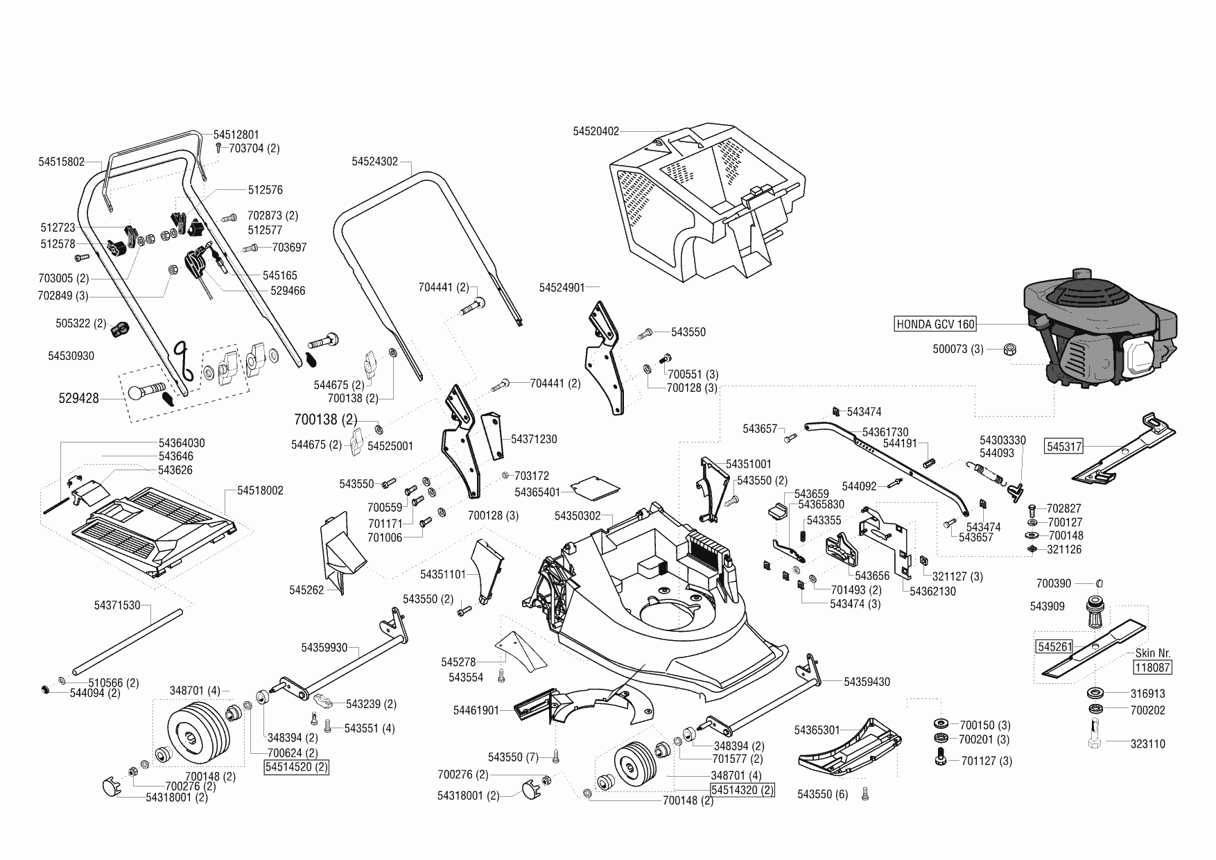 Zeichnungen von Concord Benzinrasenmäher 4800 B XXL ab 02/2002 mit der Geräte-Artikelnr. 118149:
