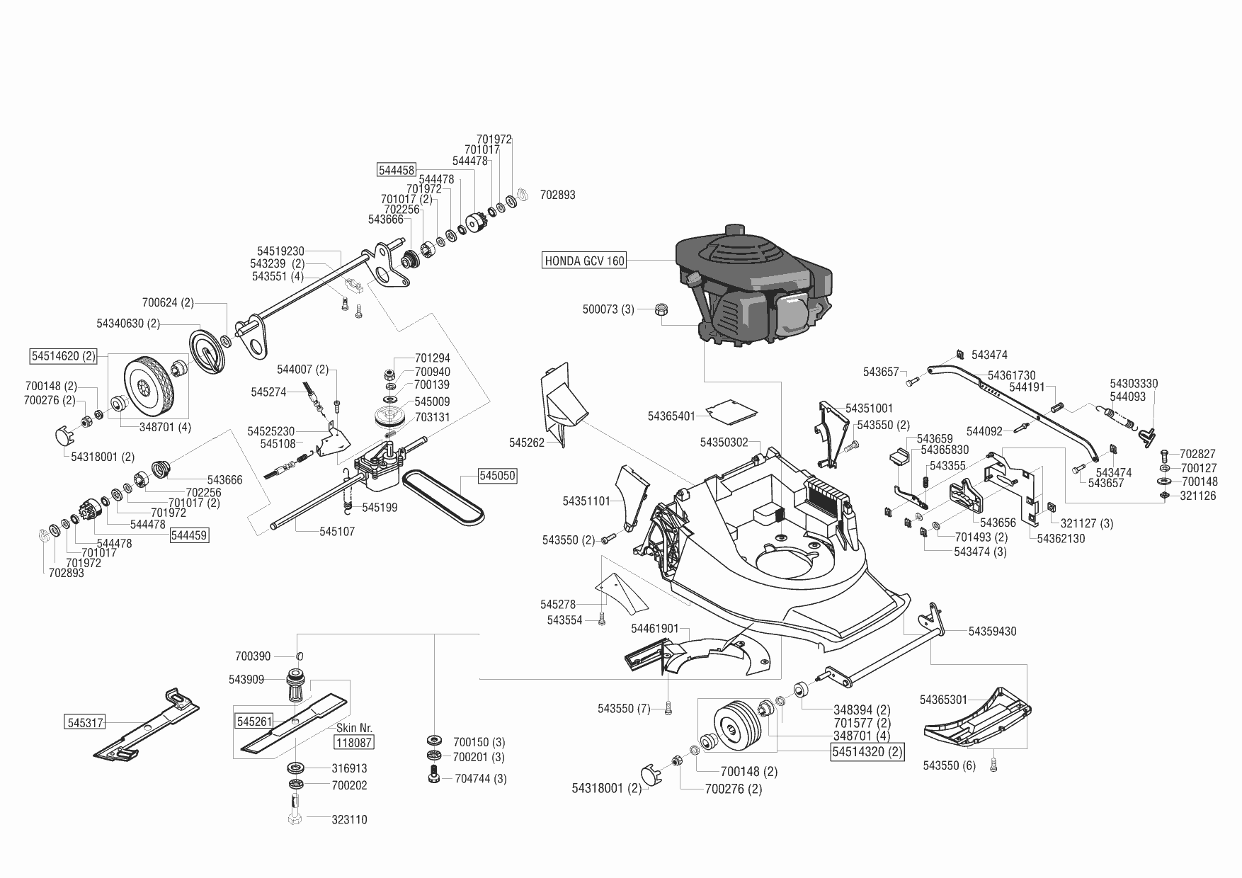Zeichnungen von Concord Benzinrasenmäher 4800 BR XXL ab 02/2002 mit der Geräte-Artikelnr. 118099:
