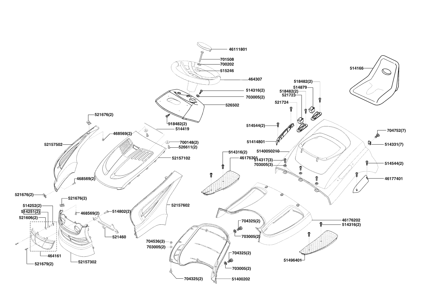 Zeichnungen von Powerline Rasentraktor T 15-92 HDE ab 02/2011 mit der Geräte-Artikelnr. 118864: