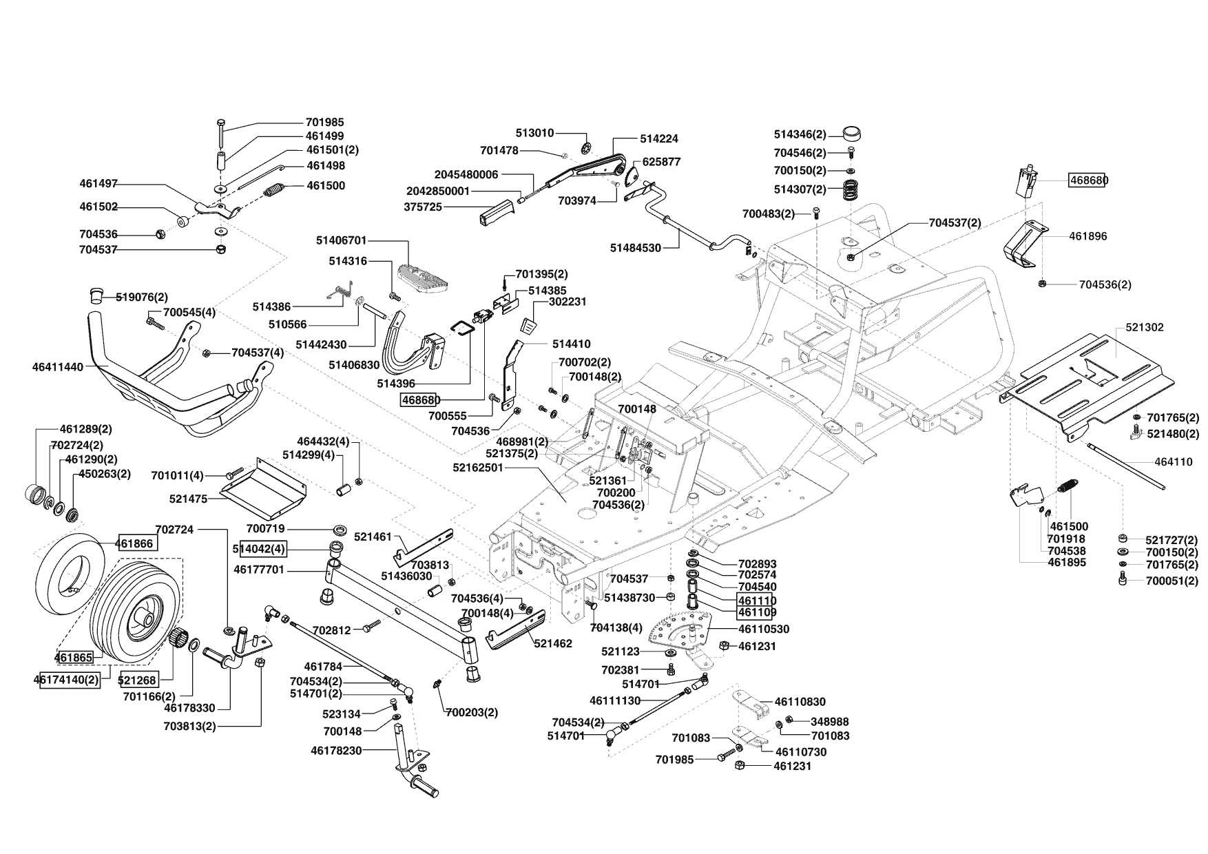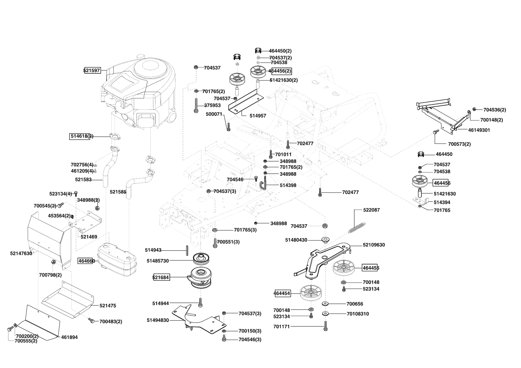 Zeichnungen von Powerline Rasentraktor T20/102 HDE ab 02/2011 mit der Geräte-Artikelnr. 118981: