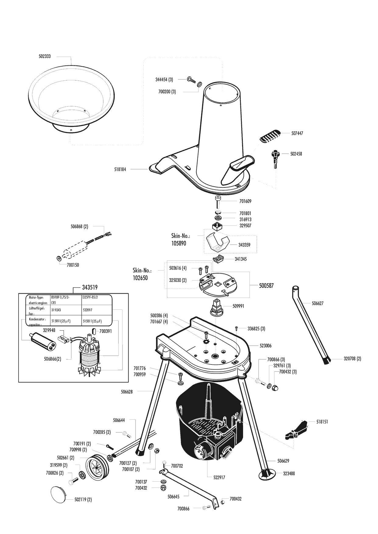 Zeichnungen von Uniropa Gartenhäcksler 2200 ab 03/1996 mit der Geräte-Artikelnr. 117214: