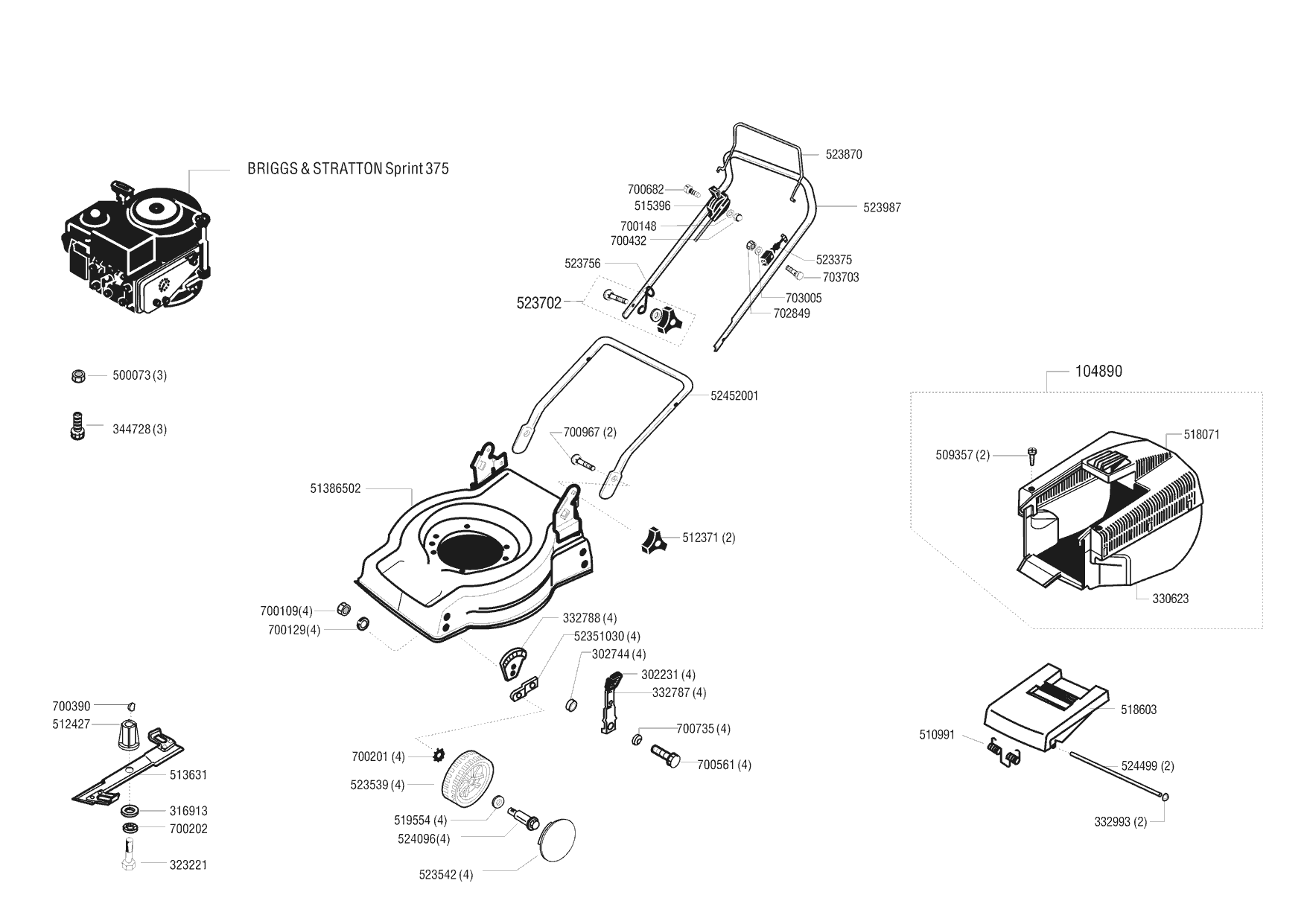 Zeichnungen von Top Garden Benzinrasenmäher 4000 B ab 03/1997 mit der Geräte-Artikelnr. 117175: