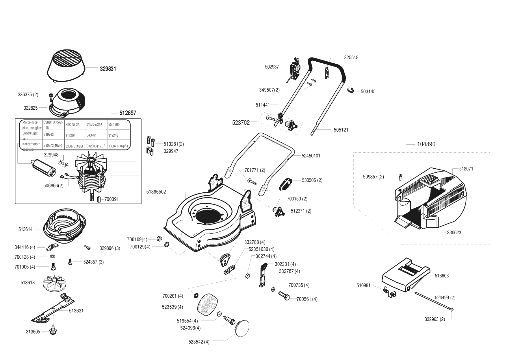 Ersatzteile von Elektrorasenmäher 4000 E: