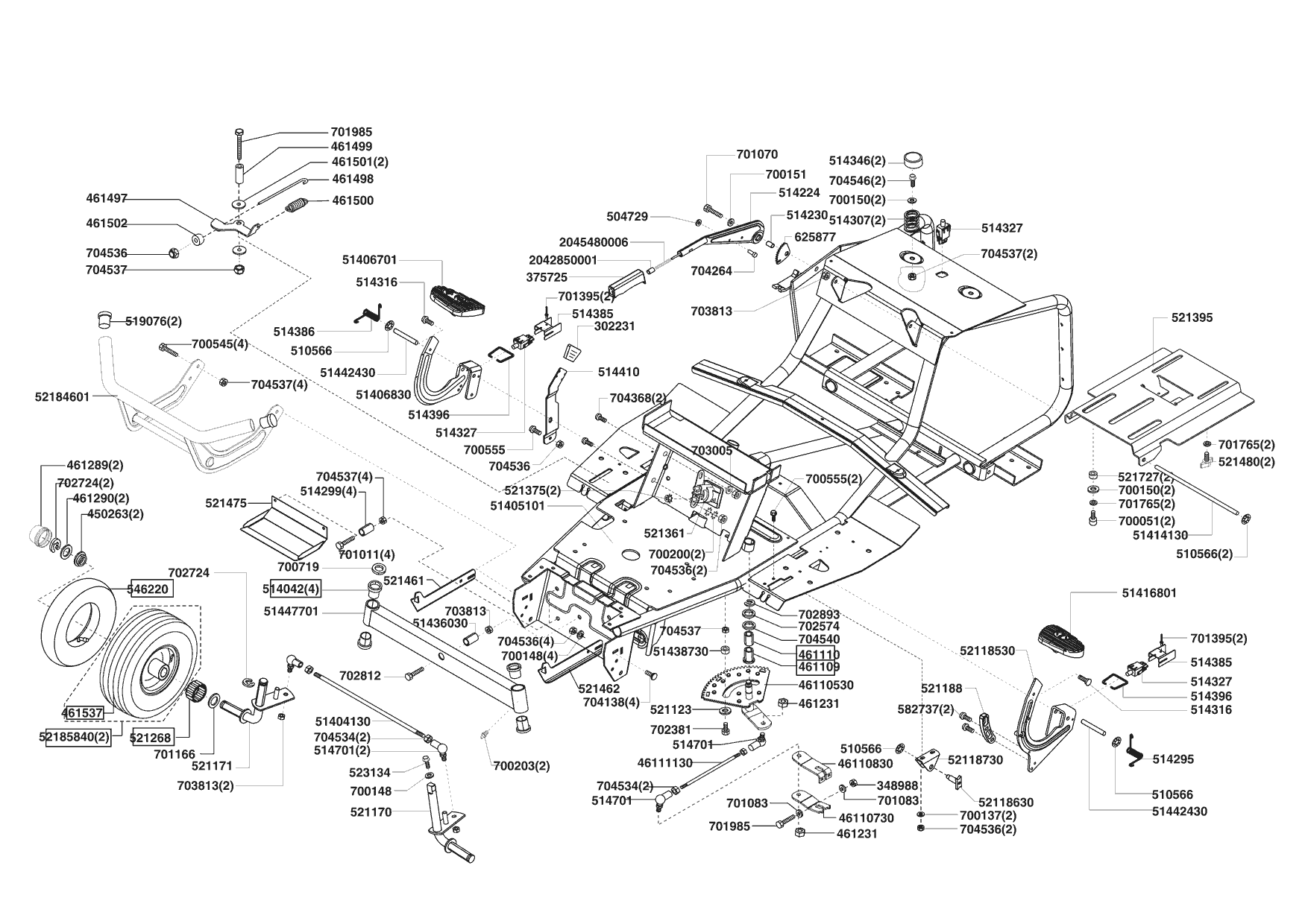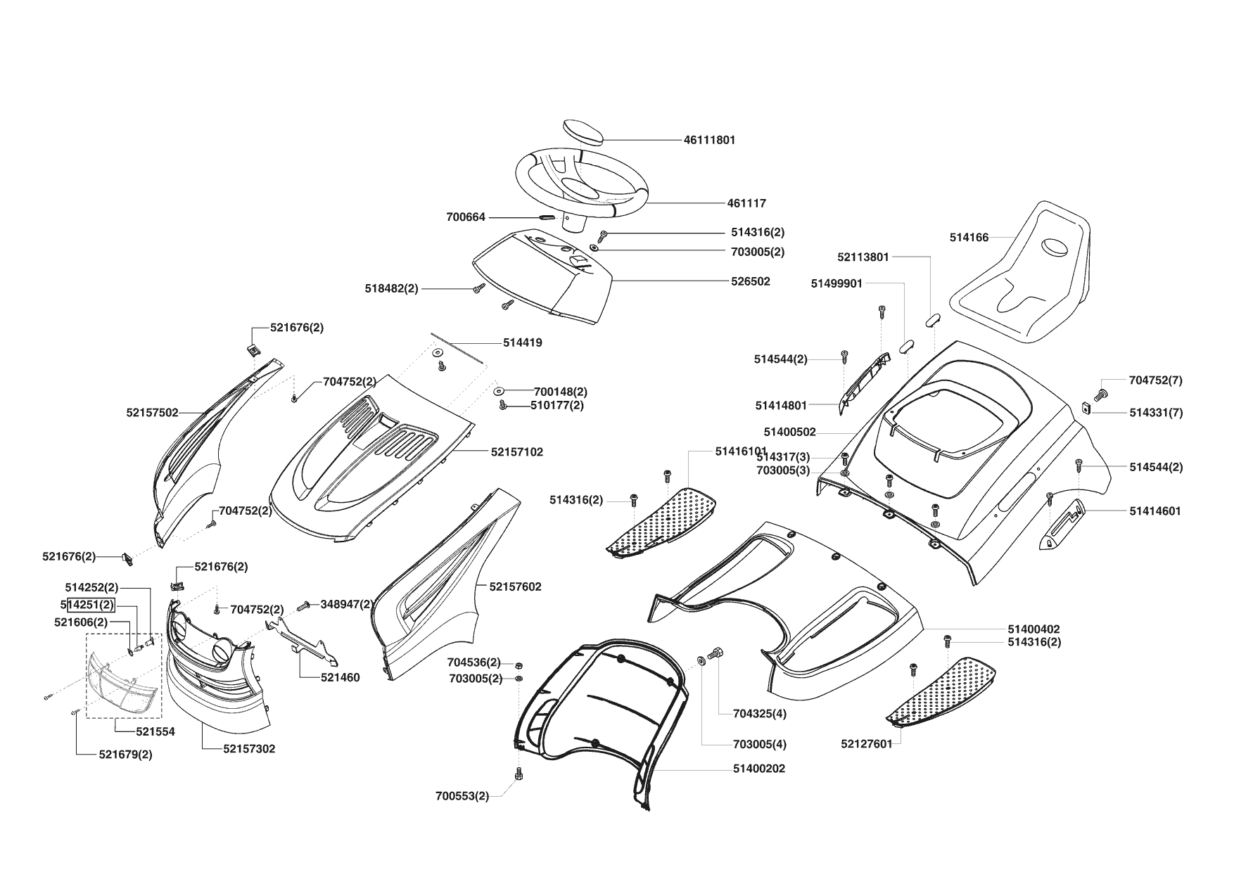 Zeichnungen von Powerline Rasentraktor T 13-74 ab 03/2006 mit der Geräte-Artikelnr. 118514: