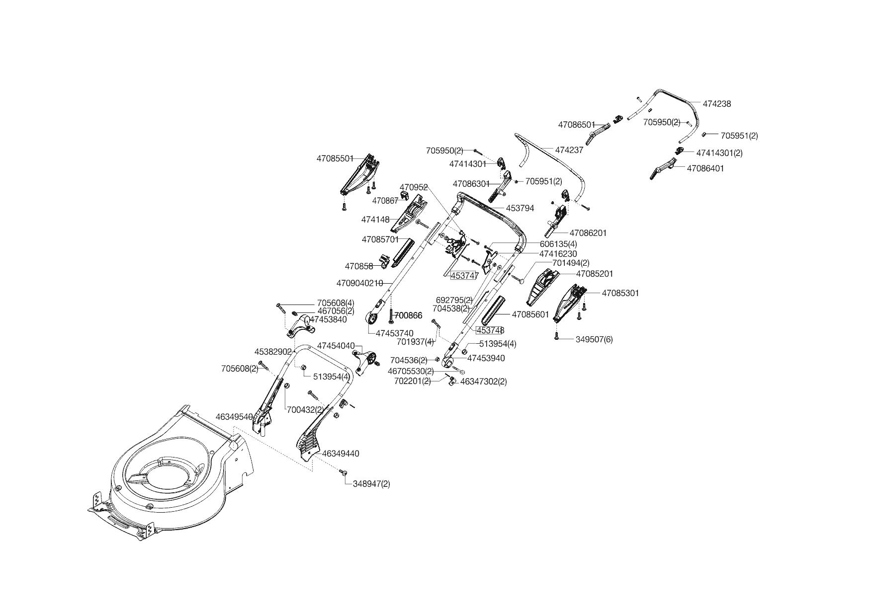 Zeichnungen von Powerline Benzinrasenmäher 4700 BR-H ab 03/2012 mit der Geräte-Artikelnr. 119300: