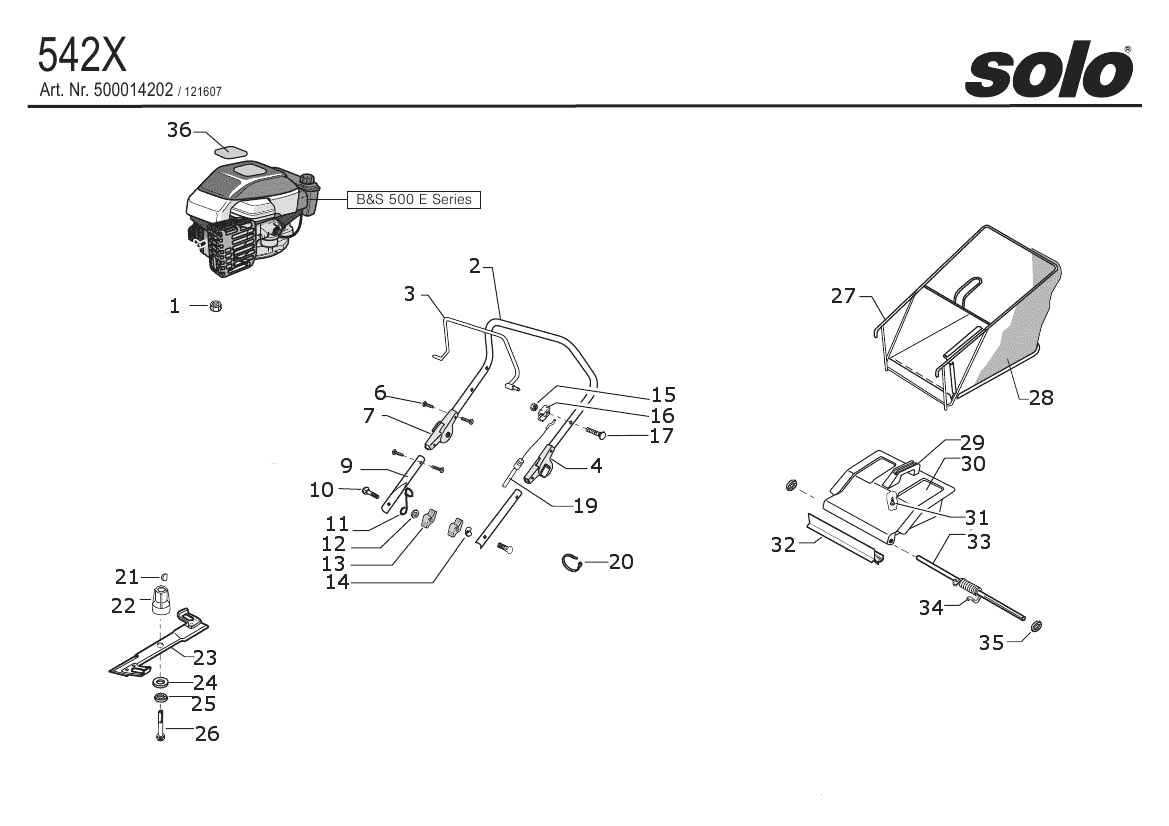 Zeichnungen von Solo by AL-KO Benzinrasenmäher 542X ab 03/2012 mit der Geräte-Artikelnr. 126599: