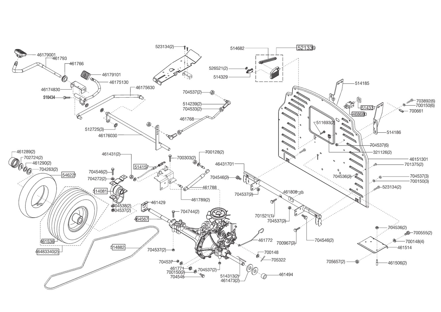 Zeichnungen von AL-KO Rasentraktor Comfort T 954 HD-A ab 03/2015 mit der Geräte-Artikelnr. 119626: