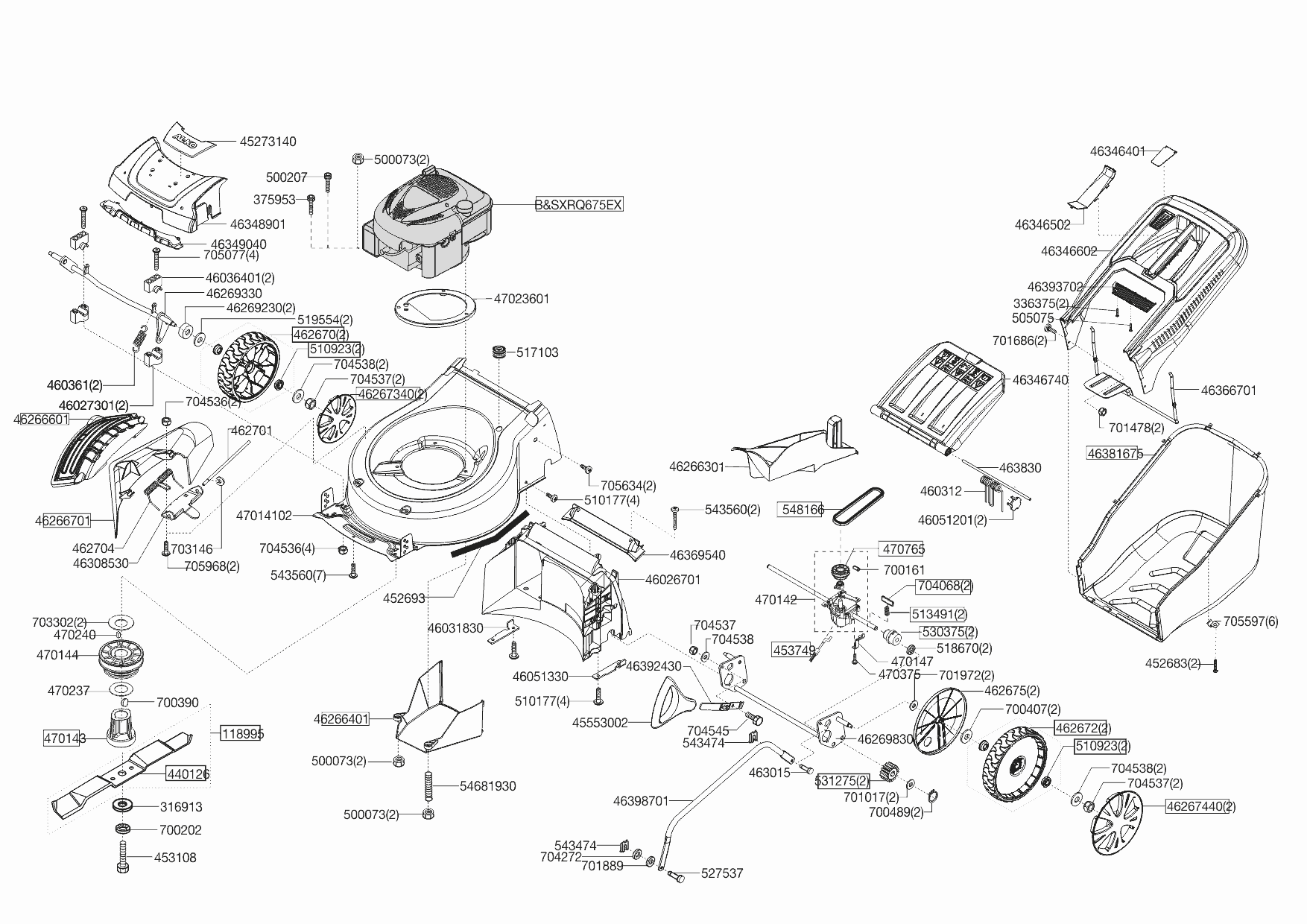 Zeichnungen von Powerline Benzinrasenmäher 5204 VS Selection ab 03/2015 mit der Geräte-Artikelnr. 119529: