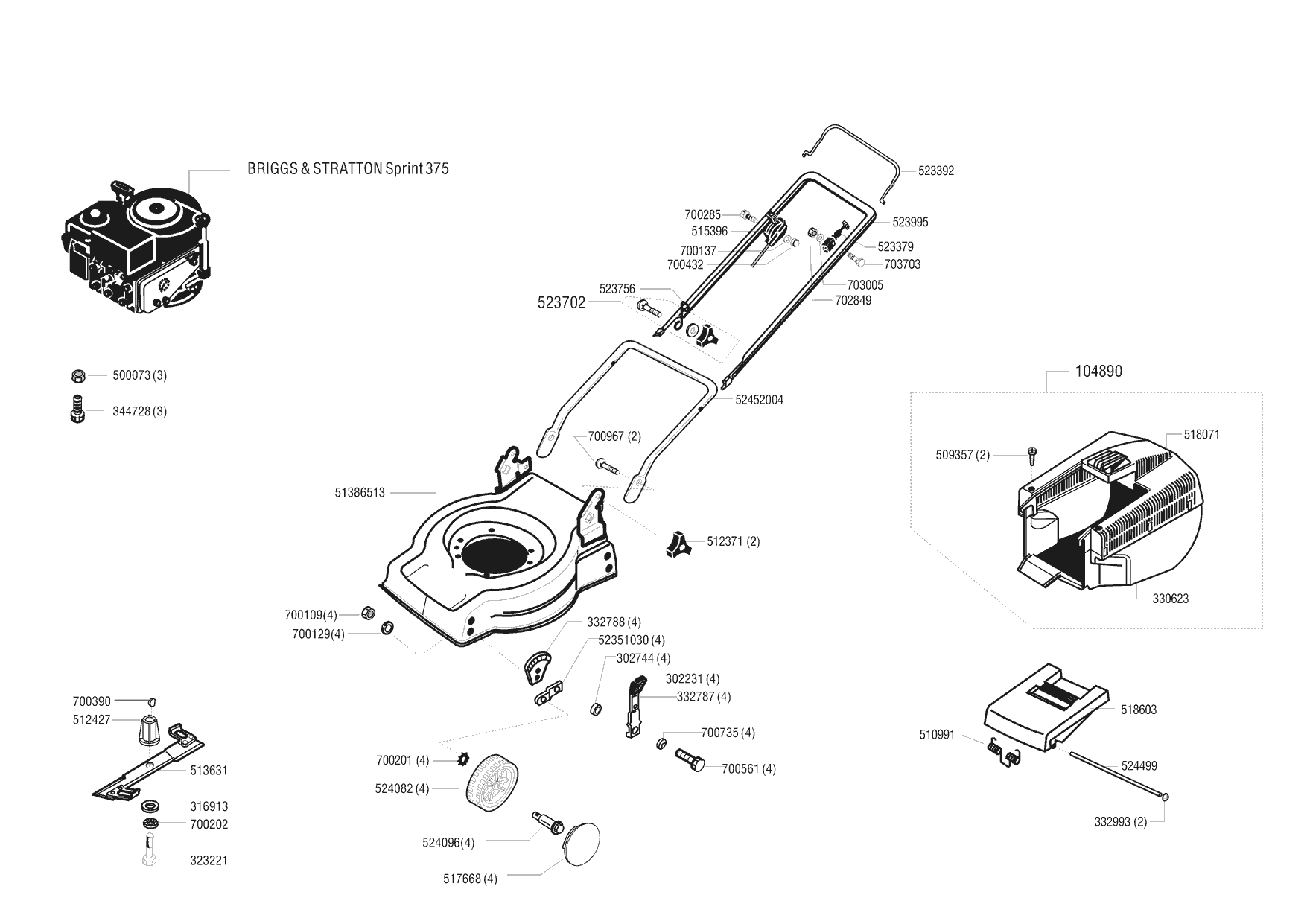 Zeichnungen von Gardol Benzinrasenmäher 400 B ab 04/1997 mit der Geräte-Artikelnr. 117185:
