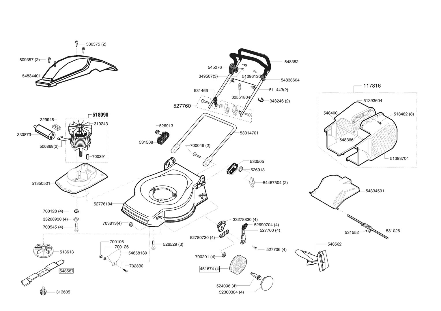 Zeichnungen von AL-KO Elektrorasenmäher Comfort 47 E Bio ab 04/2006 mit der Geräte-Artikelnr. 118355: