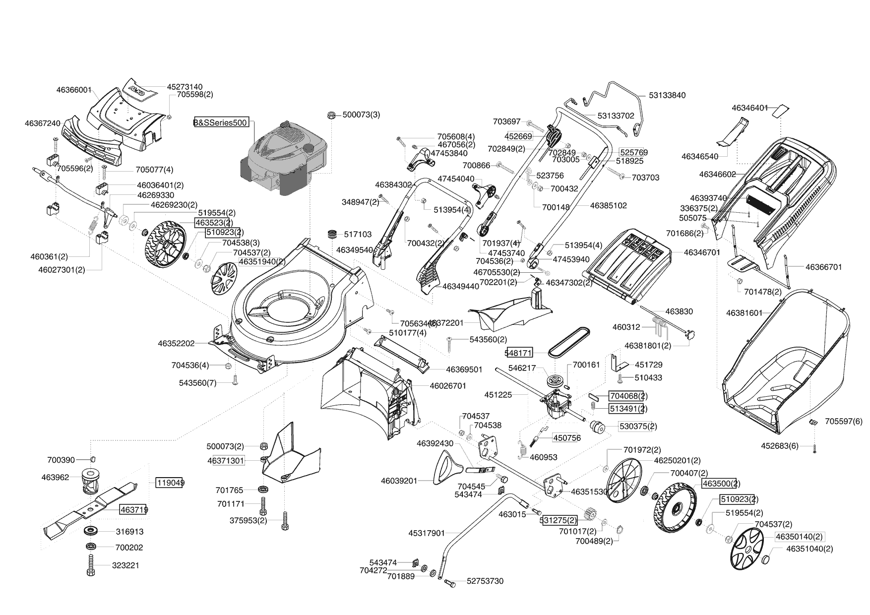 Zeichnungen von Powerline Benzinrasenmäher 4200 BR ab 04/2012 mit der Geräte-Artikelnr. 119197: