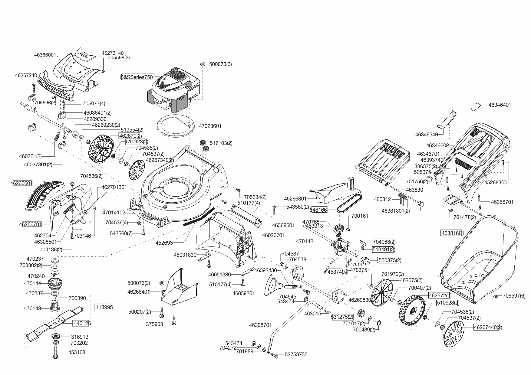 Zeichnungen von Powerline Benzinrasenmäher 5200 BRV ab 04/2012 mit der Geräte-Artikelnr. 119303: