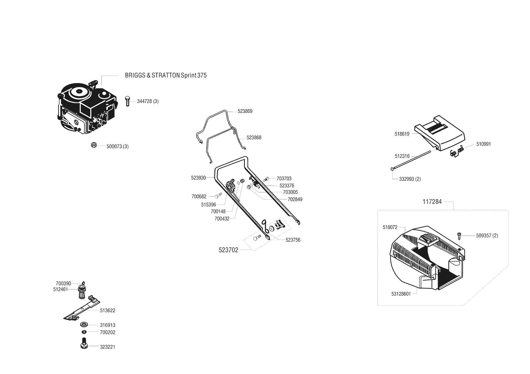 Zeichnungen von Top Garden Benzinrasenmäher 4800 BR ab 05/1997 mit der Geräte-Artikelnr. 117177: