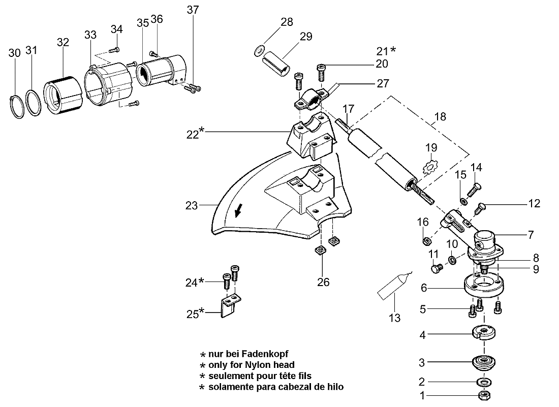 Zeichnungen von Solo by AL-KO Motorsensen 130R / 130LR / 130 BR ab 05/2003 mit der Geräte-Artikelnr. 100013001: