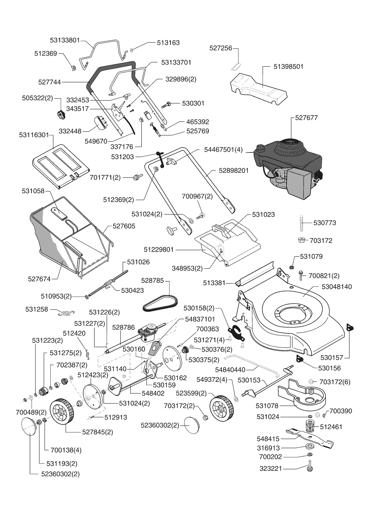 Zeichnungen von Euro Line Benzinrasenmäher 5300 HR ab 05/2004 mit der Geräte-Artikelnr. 120465:
