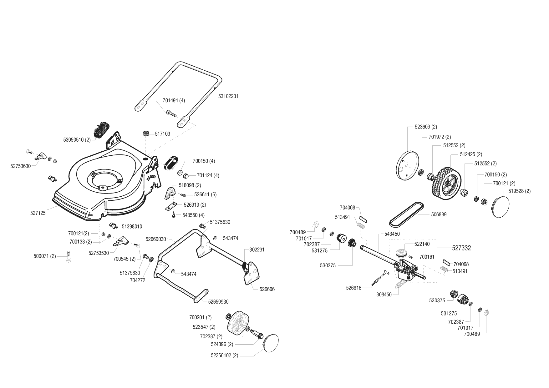 Zeichnungen von Concord Benzinrasenmäher 4700 HPR ab 06/1998 mit der Geräte-Artikelnr. 117791: