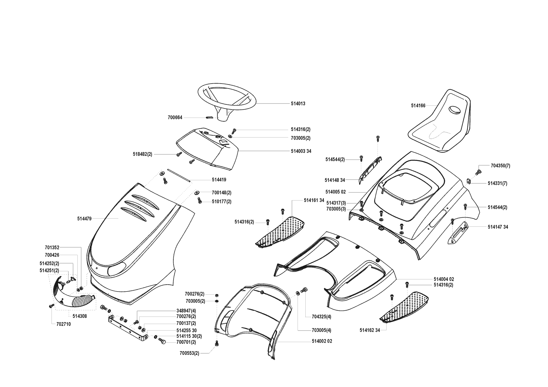 Zeichnungen von Concord Rasentraktor T13-85 HD-H ab 06/1999 mit der Geräte-Artikelnr. 110757: