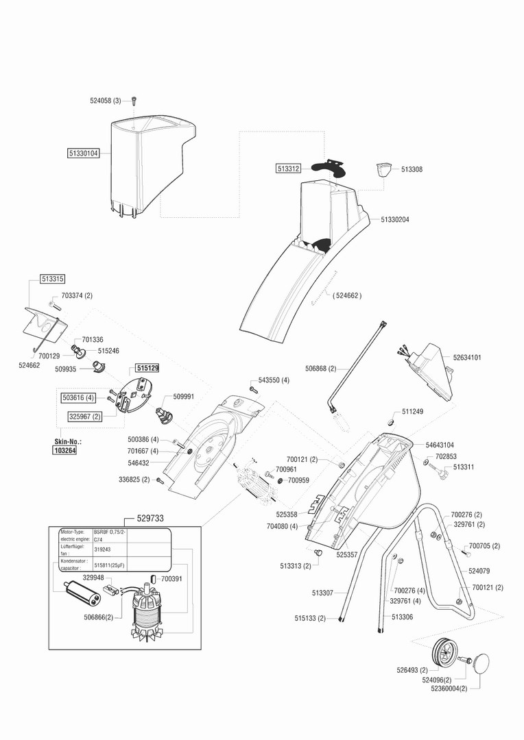 Zeichnungen von AL-KO Gartenhäcksler Jubii 2000 ab 06/2002 mit der Geräte-Artikelnr. 118291: