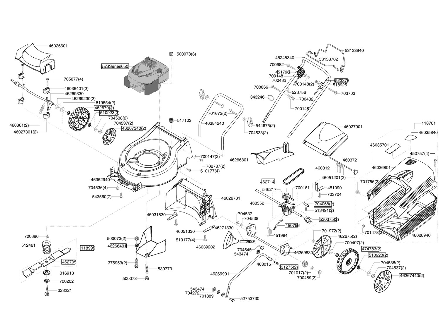 Zeichnungen von AL-KO Benzinrasenmäher SILVER 510 BR ab 06/2012 mit der Geräte-Artikelnr. 119214: