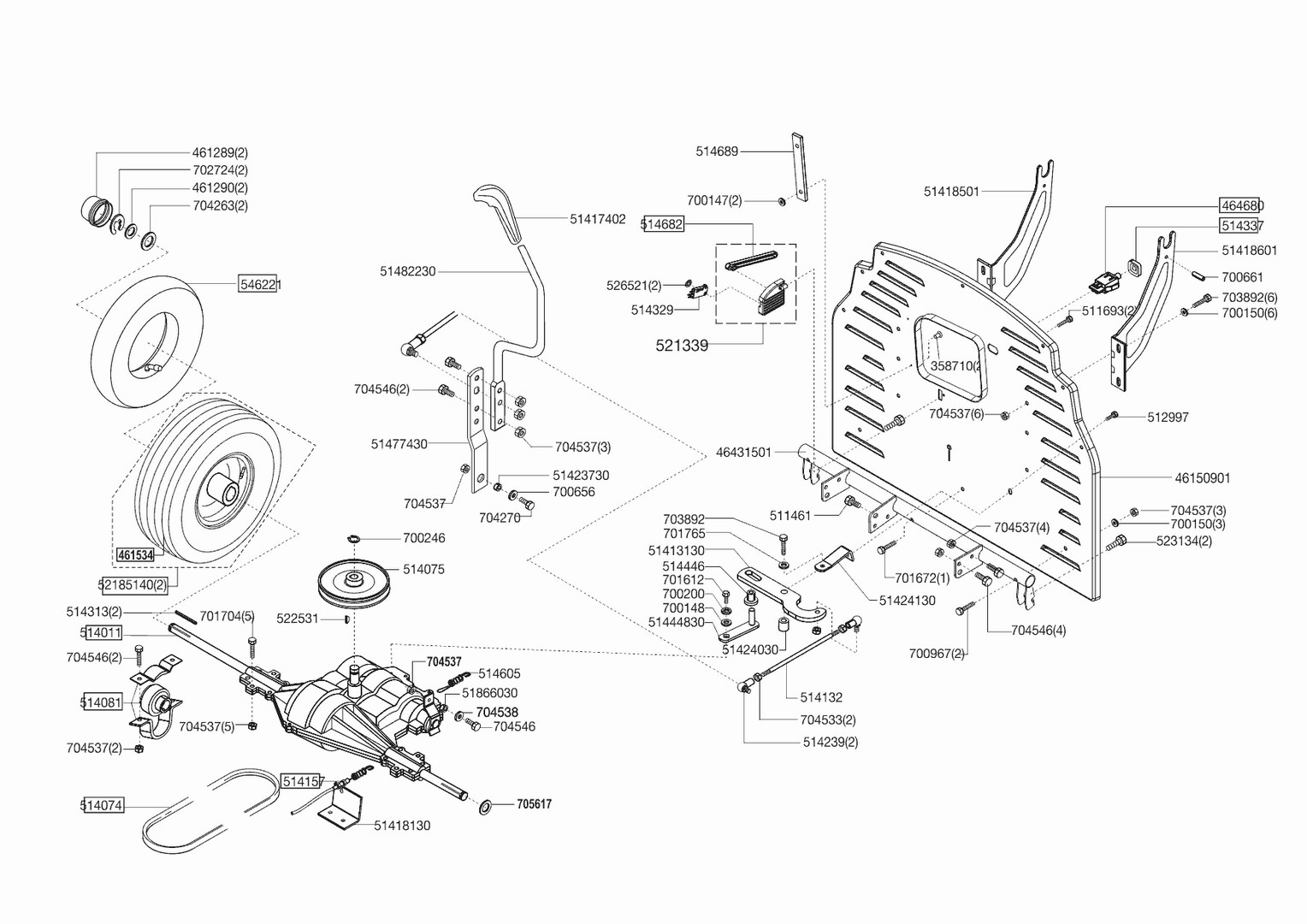 Zeichnungen von AL-KO Rasentraktor Comfort T750 ab 06/2012 mit der Geräte-Artikelnr. 119044: