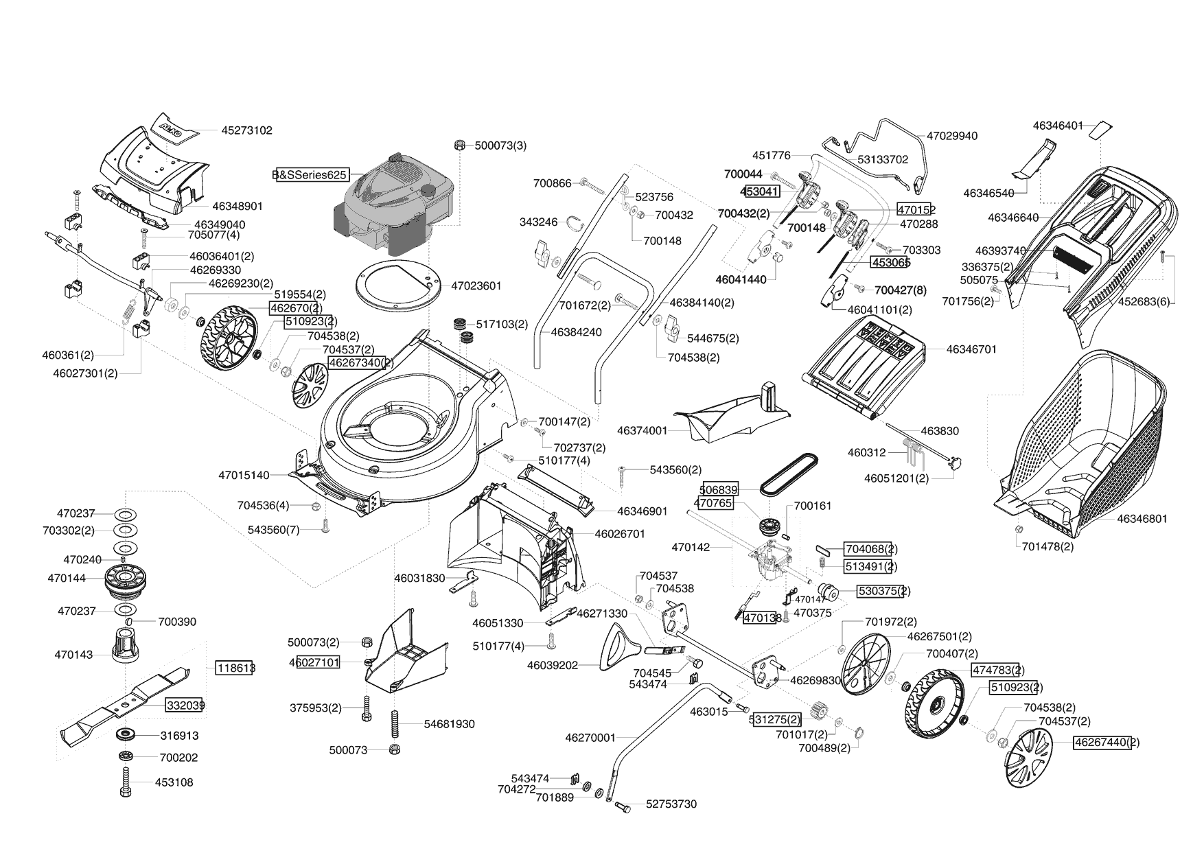 Zeichnungen von Ginge Benzinrasenmäher SILVER 470 BV AUTO ab 06/2012 mit der Geräte-Artikelnr. 119203: