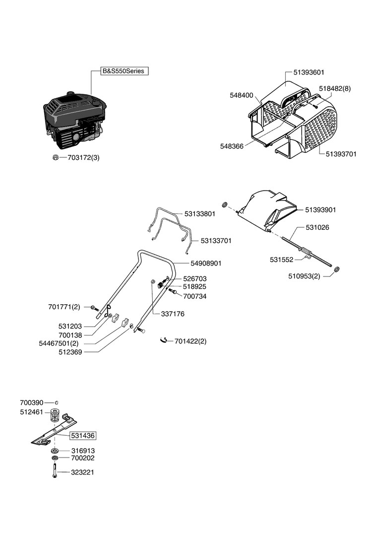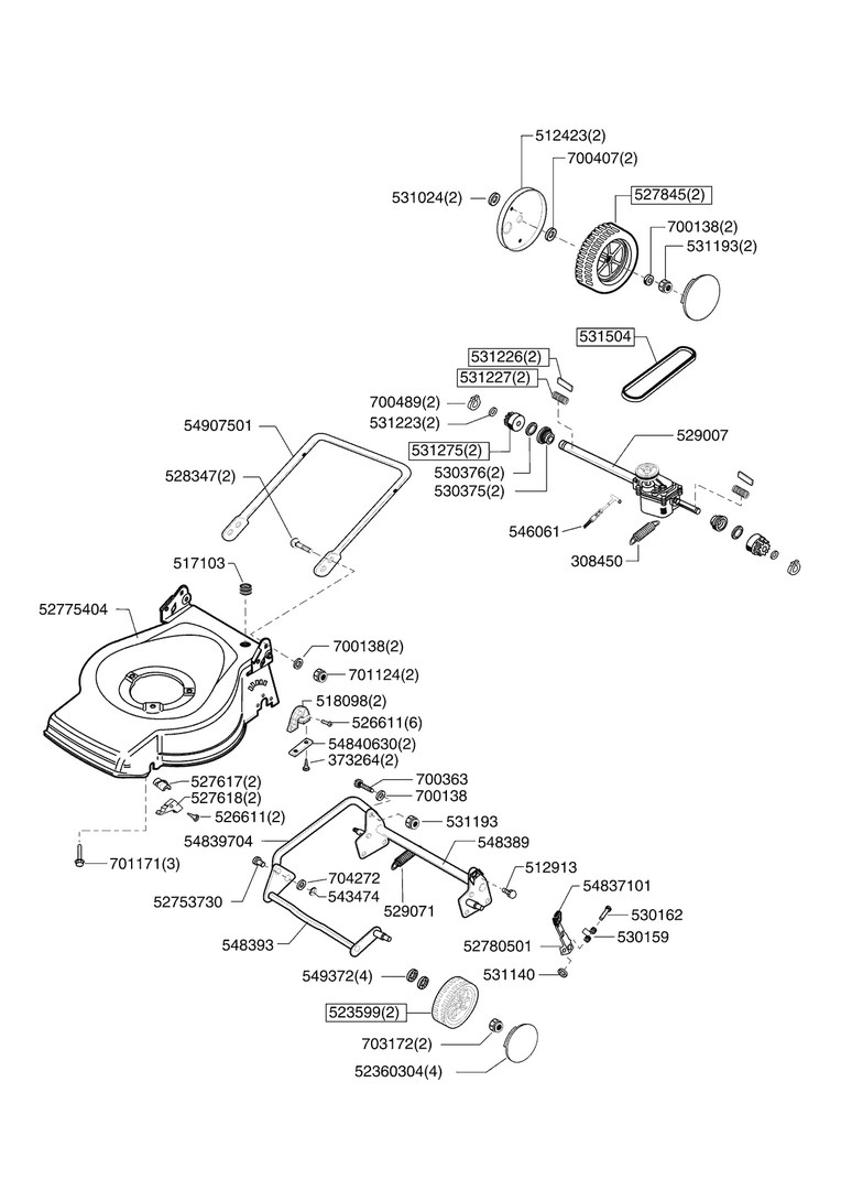 Zeichnungen von AL-KO Benzinrasenmäher Plus 3 R ab 07/2008 mit der Geräte-Artikelnr. 121394: