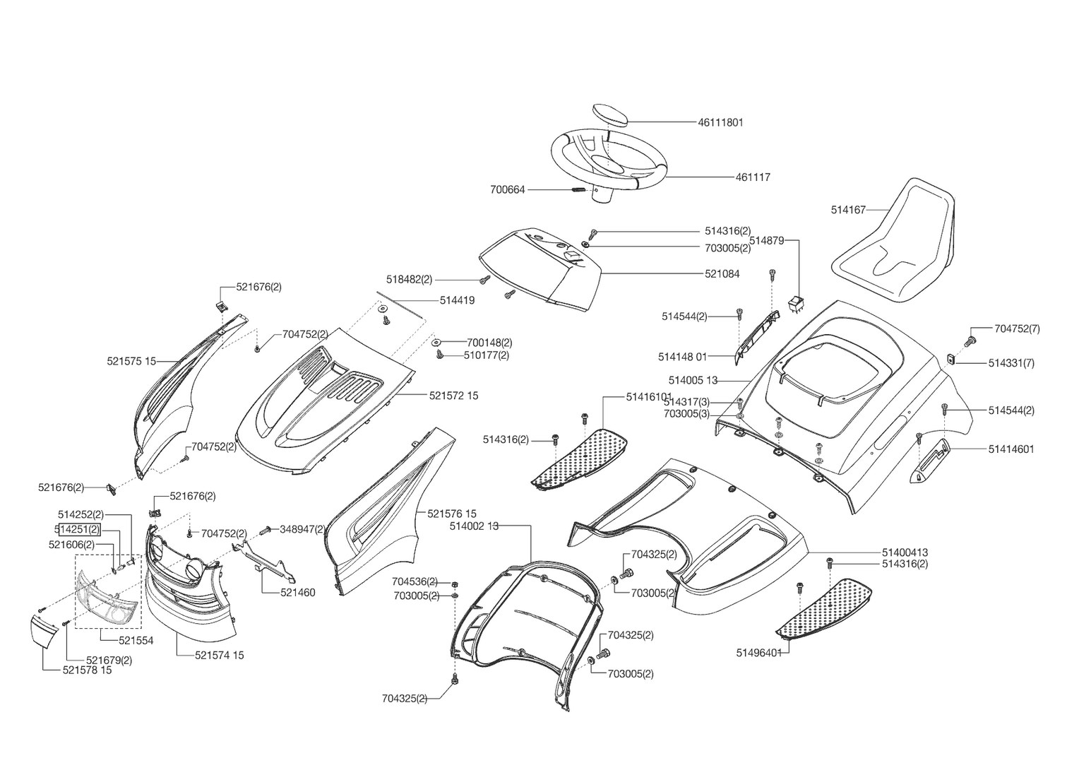 Zeichnungen von AL-KO Rasentraktor T15/102 MARINA ab 07/2012 mit der Geräte-Artikelnr. 118827: