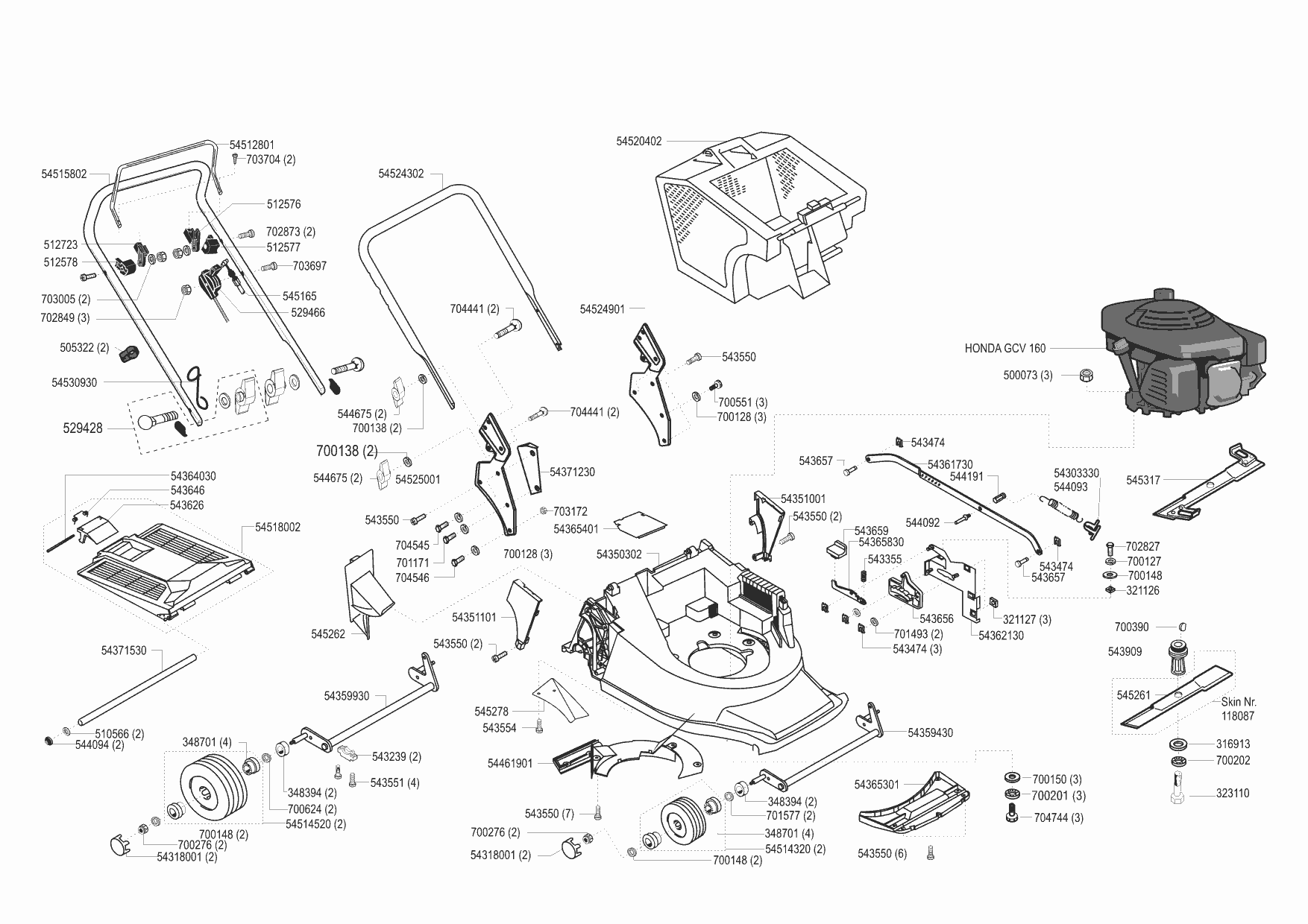 Zeichnungen von Concord Benzinrasenmäher 48 B XXL ab 08/2000 mit der Geräte-Artikelnr. 118098: