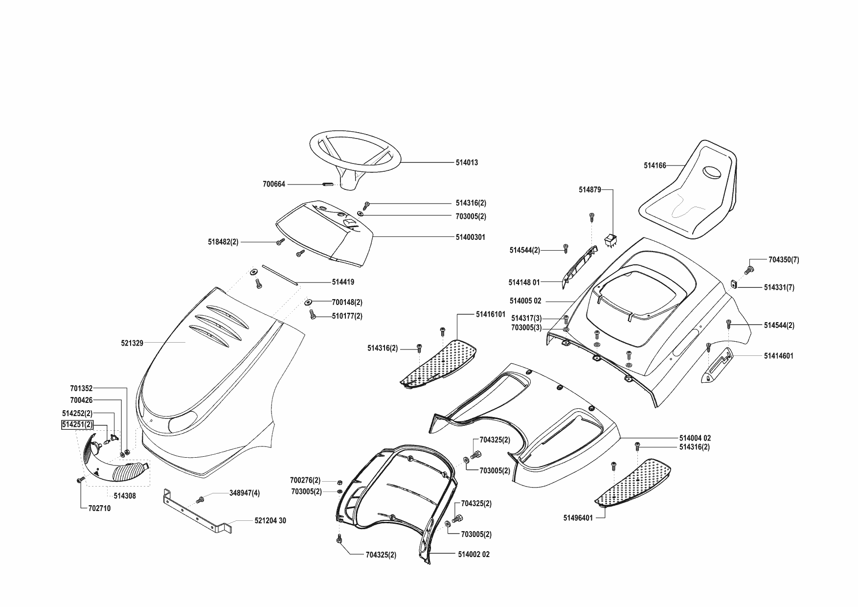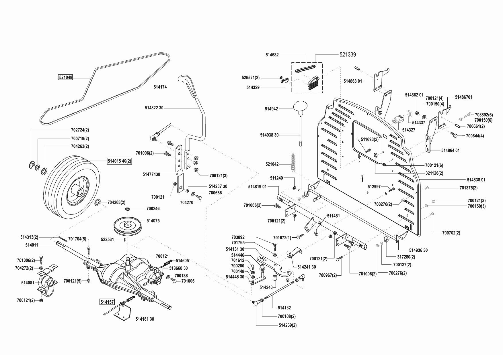 Zeichnungen von Concord Rasentraktor T16-102 ab 08/2001 mit der Geräte-Artikelnr. 110919: