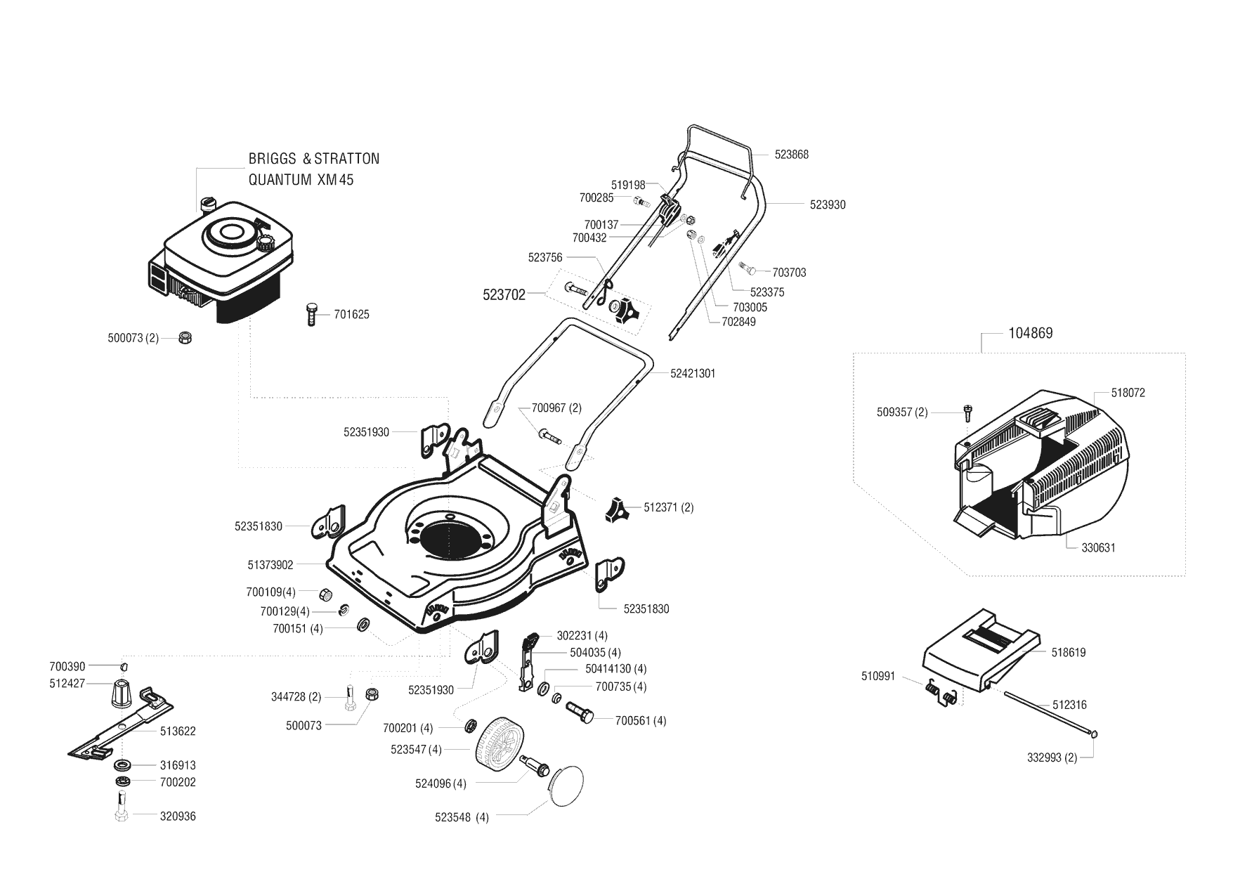 Zeichnungen von Concord Benzinrasenmäher 48 B ab 09/1997 mit der Geräte-Artikelnr. 110634: