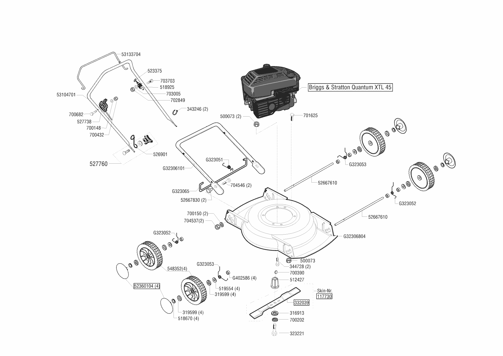 Zeichnungen von Ginge Mulchmäher Comfort Bio 46 ab 09/2002 mit der Geräte-Artikelnr. 117931:
