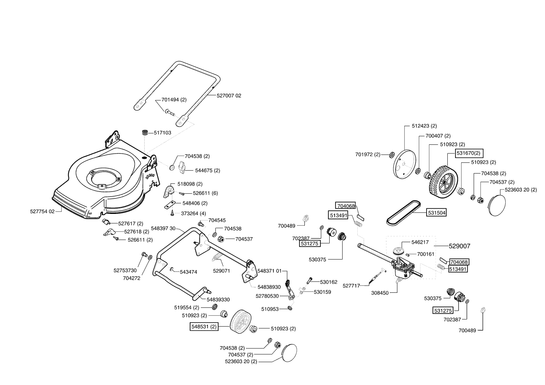 Zeichnungen von Concord Benzinrasenmäher 4700 BRA ab 09/2004 mit der Geräte-Artikelnr. 118225: