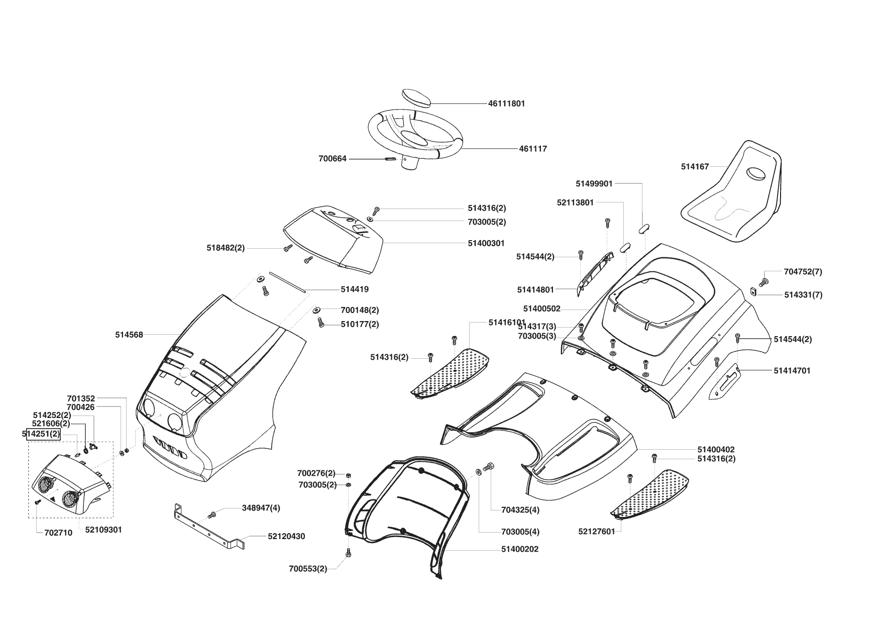 Zeichnungen von Powerline Rasentraktor T 13-82 HD ab 09/2007 mit der Geräte-Artikelnr. 118781: