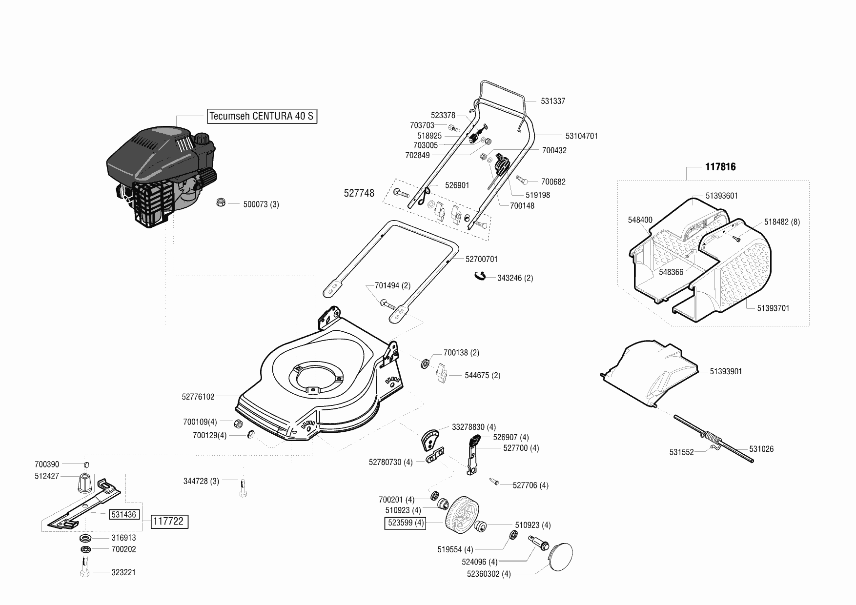 Zeichnungen von Top Garden Benzinrasenmäher 4802 B ab 10/2001 mit der Geräte-Artikelnr. 118259: