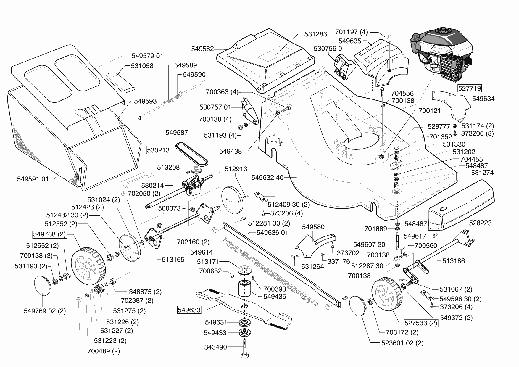 Zeichnungen von Euro Line Benzinrasenmäher 5600 HR3 ab 10/2001 mit der Geräte-Artikelnr. 120518: