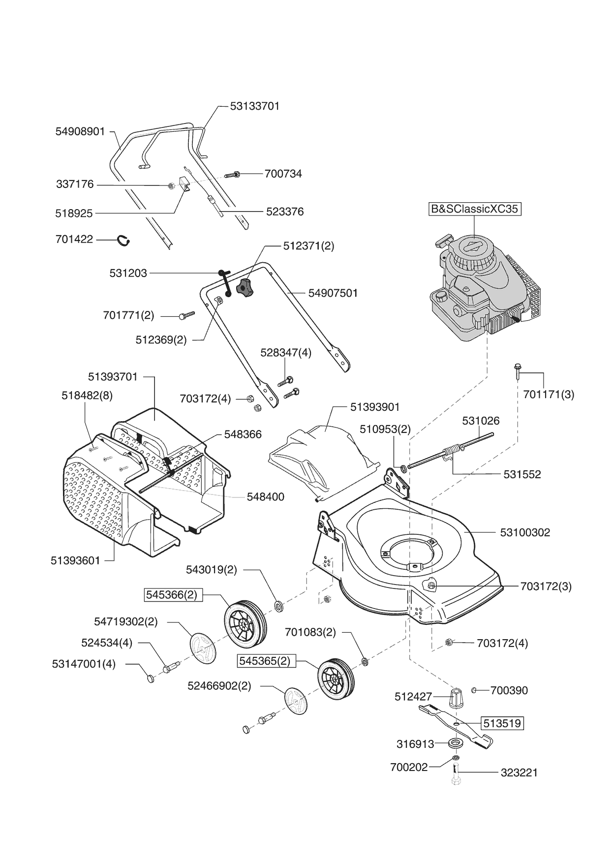 Zeichnungen von GO/ON Benzinrasenmäher 3540 P (ORION) ab 10/2005 mit der Geräte-Artikelnr. 121183:
