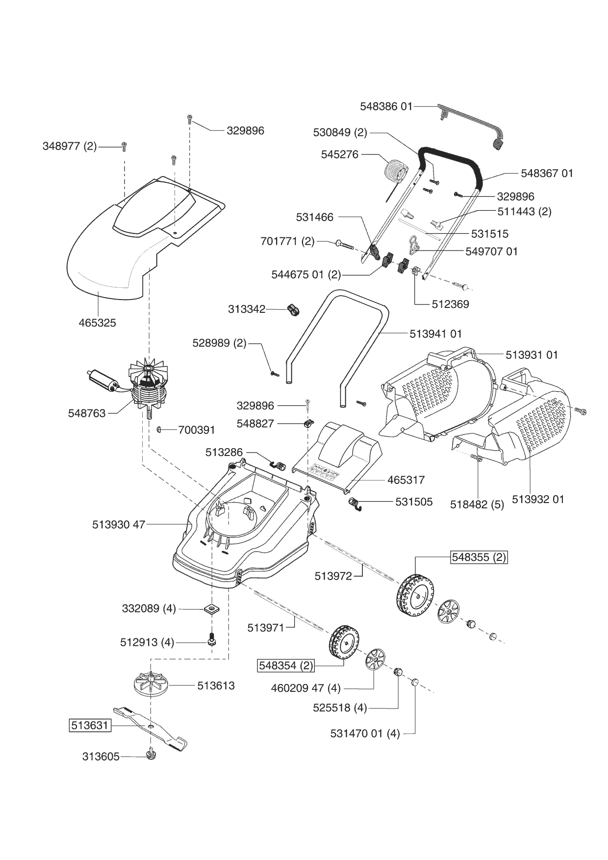 Zeichnungen von Dehner Elektrorasenmäher Comfort 40 E ab 11/2003 mit der Geräte-Artikelnr. 121110: