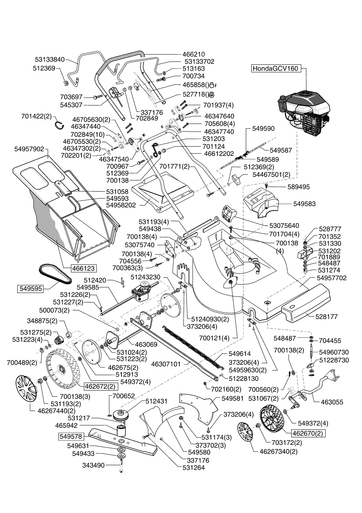 Zeichnungen von Powerline Benzinrasenmäher 4800 BR-H ab 11/2008 mit der Geräte-Artikelnr. 121317: