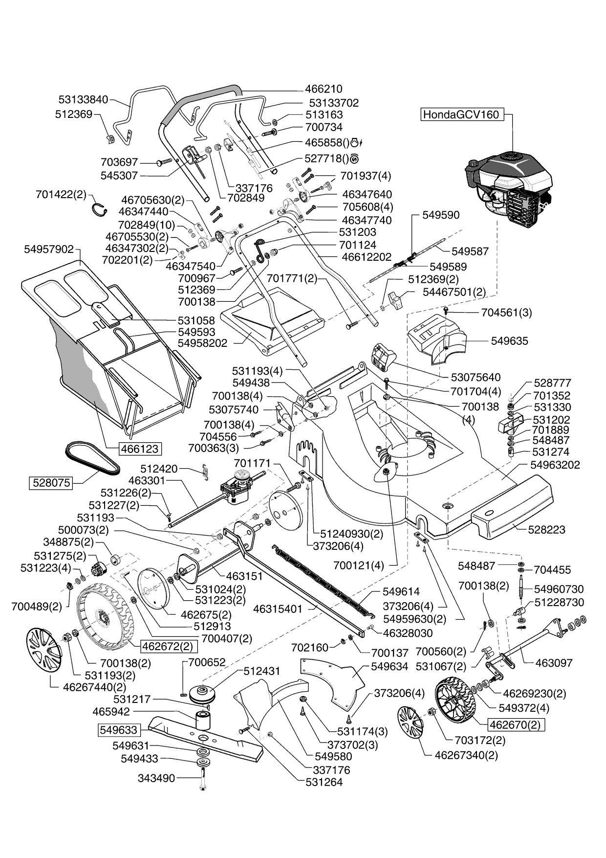 Zeichnungen von Powerline Benzinrasenmäher 5300 BR-H ab 11/2008 mit der Geräte-Artikelnr. 121318: