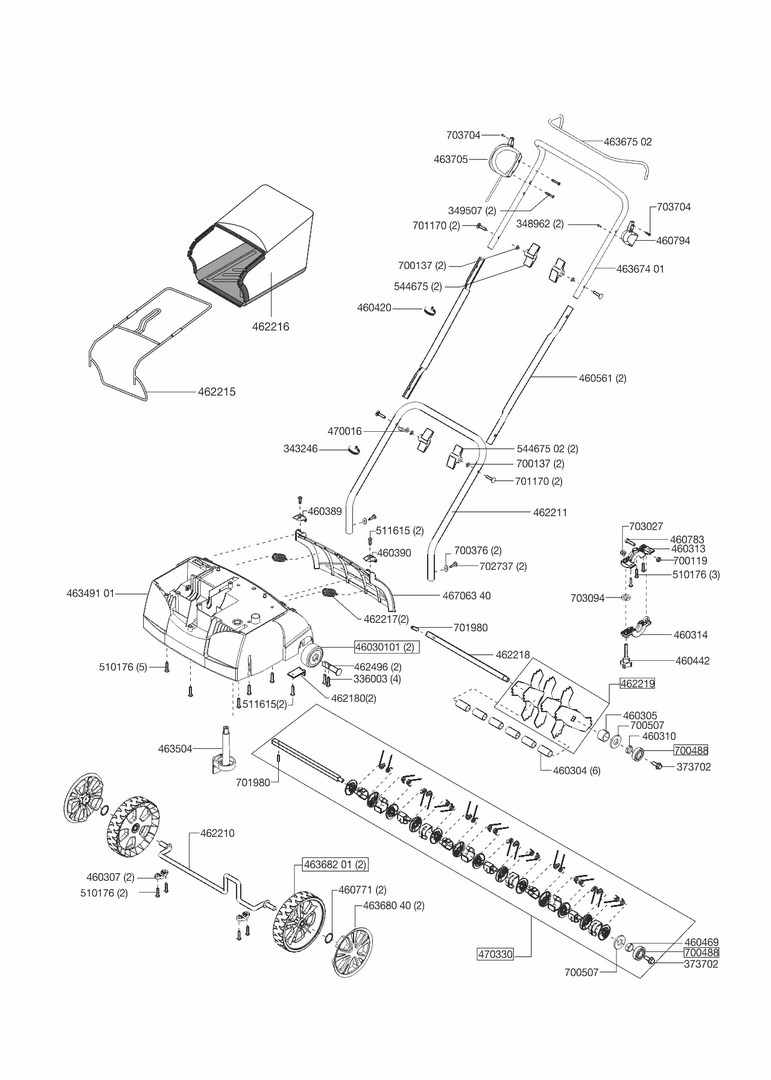 Zeichnungen von AL-KO Vertikutierer COMFORT 38 VLB COMBI-CARE ab 11/2008 mit der Geräte-Artikelnr. 112550: