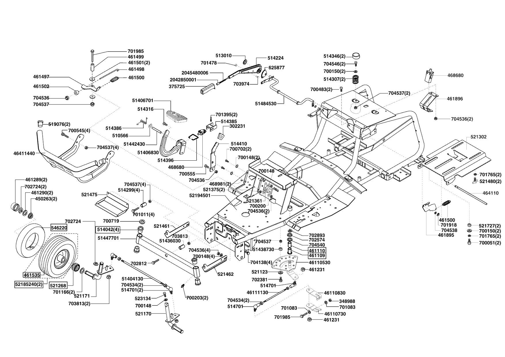 Zeichnungen von Powerline Rasentraktor T18-102 HDS ab 11/2009 mit der Geräte-Artikelnr. 119007: