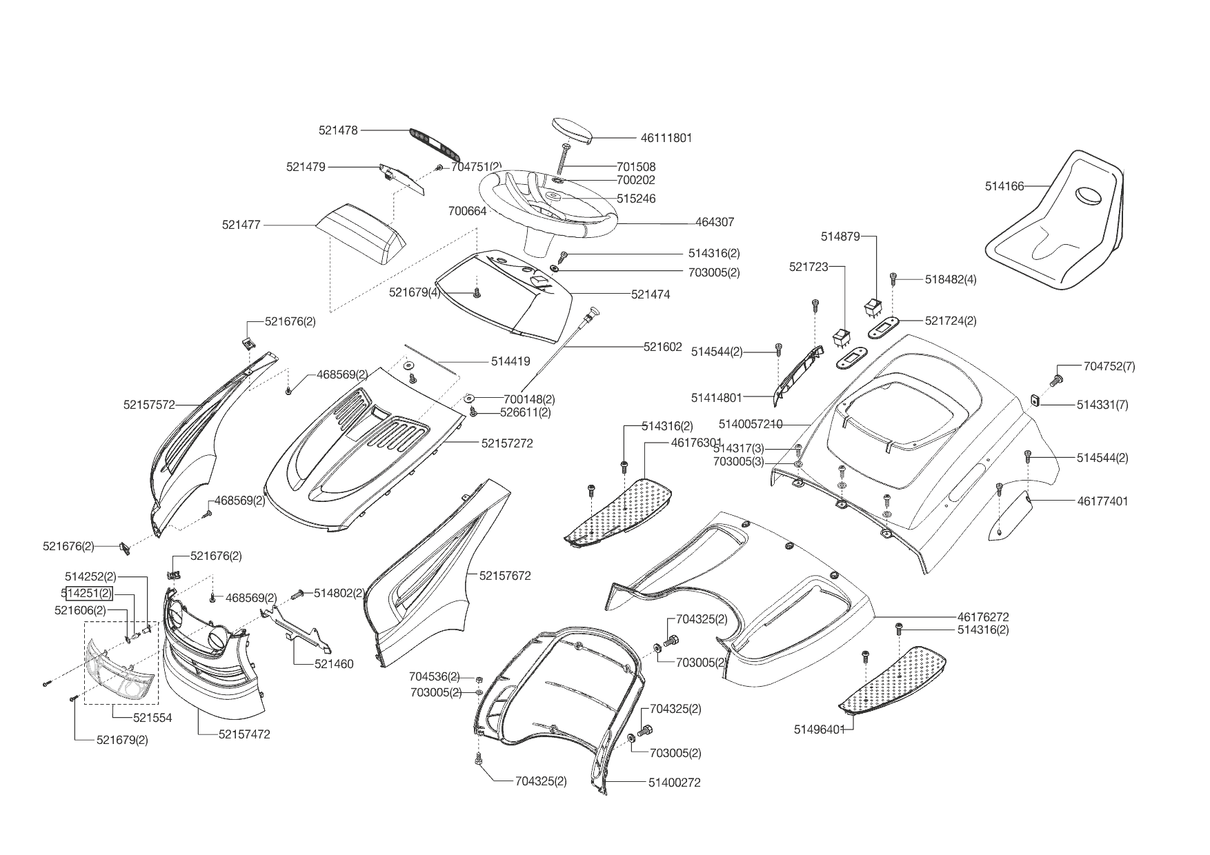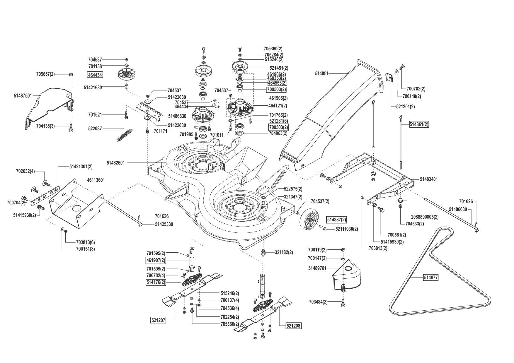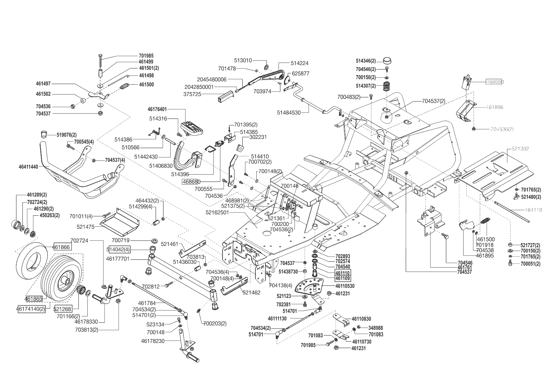 Zeichnungen von Powerline Rasentraktor T20-102 HDE ab 11/2009 mit der Geräte-Artikelnr. 119006: