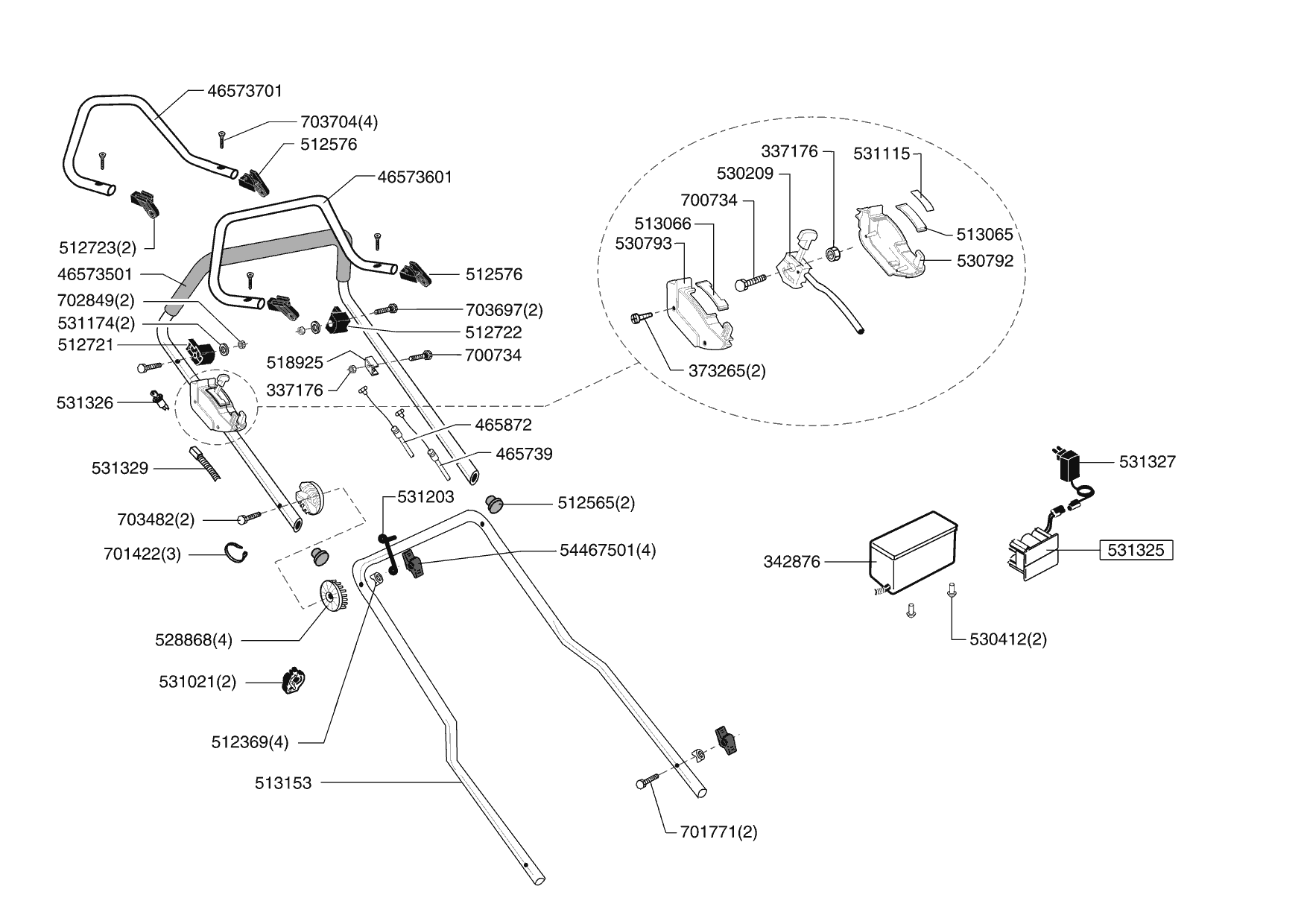 Zeichnungen von Dehner Benzinrasenmäher V 56 HESZ ab 12/2006 mit der Geräte-Artikelnr. 120917: