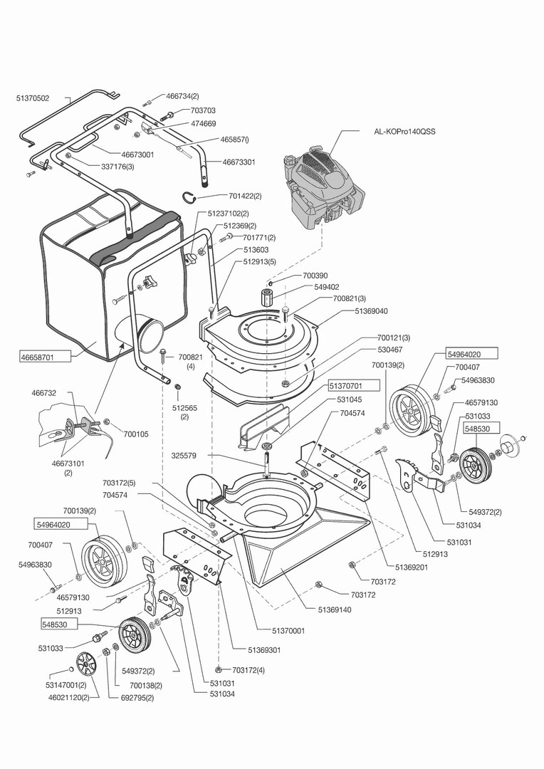 Zeichnungen von AL-KO Laubsauger 75 B Hurricane ab 12/2014 mit der Geräte-Artikelnr. 121605: